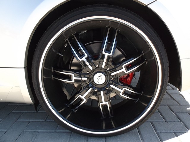 Interior of this car is perfect.  The leather seats and carpets are in awesome condition.  All dash components and knobs are in showroom condition.  Exterior of car is just as good.  The body and paint are perfect with no dings, dents or scratches.  The convertible  top is in perfect condition and has no flaws in the top.  The tires are brand new and are mounted on 22 inch custom black, deep lip wheels.  These black wheels with the black top really set this car off.