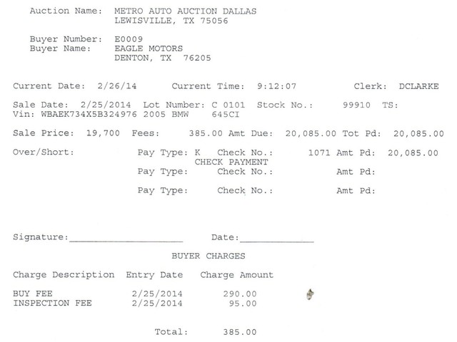 We have operated Eagle Motors, a family owned Independent Dealership in Denton, Texas for the last 10 years.  All paperwork for the sale will be completed by Eagle Motors.  We knew there was a better way to get quality, pre-owned, like new vehicles to the public in a less expensive way.  Dealers get to purchase the pre-owned vehicles that they put on their lot through an auction and bidding process, high bidder wins the auction.  We thought, why can't the same vehicles be offered to the public in the same format.