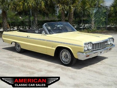 Purchased from the daughter of the owner who has cared for this car since it was only a couple of years old. It's an original Impala SS Convertible. Restored along the way as needed, refinished in the original shade of yellow with a very nice original black interior. It has the matching #'s 283 engine with the powerglide automatic transmission. The car looks amazing with a super straight body and high gloss paint job. The power top is a few years old but still looks new and goes up and down quickly. The electronics are all operational, lights, gauges, etc. Clock inoperable but all else good to go. This car has been garaged its whole life. The daughter of the 2nd owner sold it because she is too busy to enjoy it. She kept it for years not wanting to sell dear old Dad's car but finally decided to let it go to someone that could love it as much as her father did. Will you be next lucky owner to take care of this beauty? It will be an honor to own it. Please call for answers to specific questions. 941-928-2339 www.americanclassiccarsales.com We ship, we finance, we trade.
