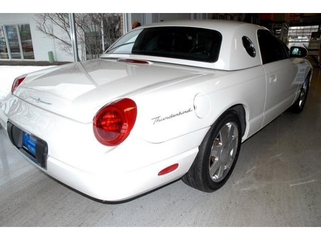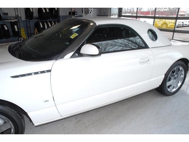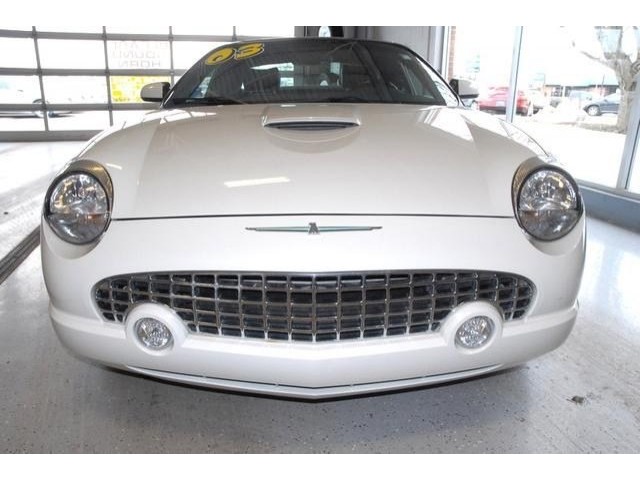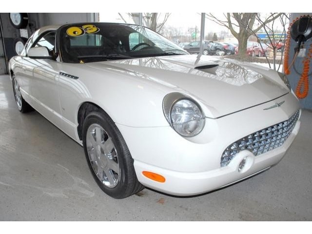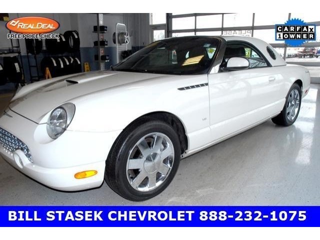2D Convertible, 3.9L V8 DOHC 32V, 5-Speed Automatic, White, Convertible HardTop, Front Bucket Seats, Front dual zone A/C, and Reclining Front Leather Bucket Seats.Are you looking for a brilliant value in a vehicle? Well, with this charming-looking and fun 2003 Ford Thunderbird, you are going to get it.. This convertible is nicely equipped with features such as 2D Convertible, 3.9L V8 DOHC 32V, 5-Speed Automatic, White, Convertible HardTop, Front Bucket Seats, Front dual zone A/C, Reclining Front Leather Bucket Seats, 4-Wheel Disc Brakes, 8 Speakers, ABS brakes, Air Conditioning, AM/FM radio, Audiophile ETR AM/FM Stereo w/In-Dash 6-CD, Auto tilt-away steering wheel, Automatic temperature control, Bodyside moldings, Bumpers: body-color, CD player, Convertible roof lining, Delay-off headlights, Driver door bin, Driver vanity mirror, Dual front impact airbags, Dual front side impact airbags, Four wheel independent suspension, Front anti-roll bar, Front Center Armrest, Front reading lights, Fully automatic headlights, Glass rear window, Illuminated entry, Leather Shift Knob, Leather steering wheel, Outside temperature display, Panic alarm, Passenger cancellable airbag, Passenger door bin, Passenger vanity mirror, Power convertible roof, Power door mirrors, Power driver seat, Power passenger seat, Power steering, Power windows, Premium audio system, Radio data system, Rear anti-roll bar, Rear window defroster, Remote keyless entry, Security system, Speed control, Speed-sensing steering, Steering wheel mounted audio controls, Tachometer, Telescoping steering wheel, Tilt steering wheel, Traction control, and Variably intermittent wipers. It will take you where you need to go every time...all you have to do is steer! Visit www.realdeal.com/bgtbh to view a Free Price Check!Serving Wheeling, Buffalo Grove, Arlington Heights, Palatine, Deerfield, Northbrook, Long Grove, Prospect Heights and all of Chicago since 1950!