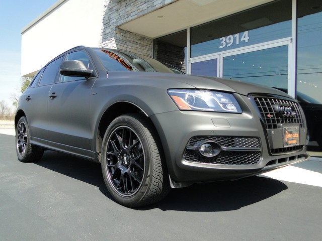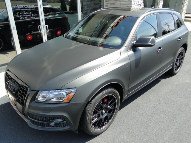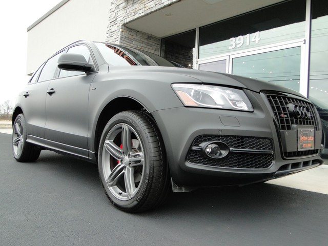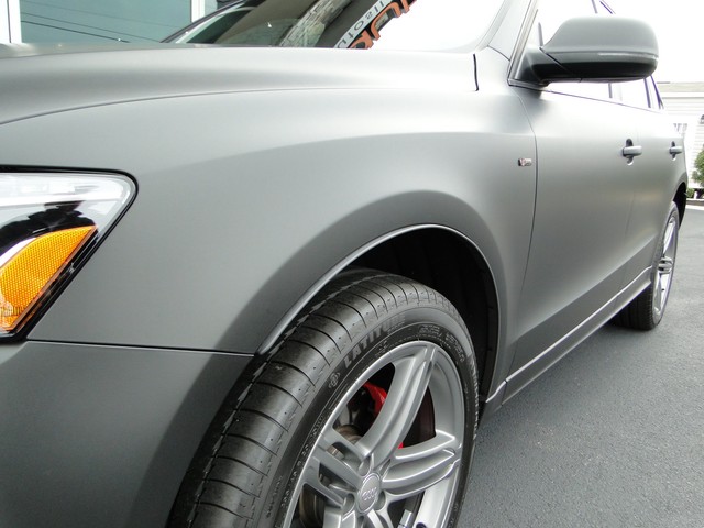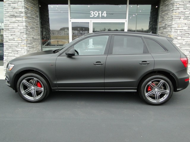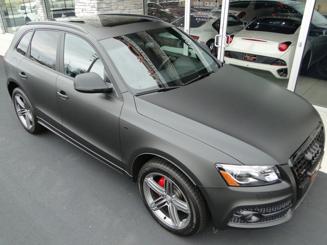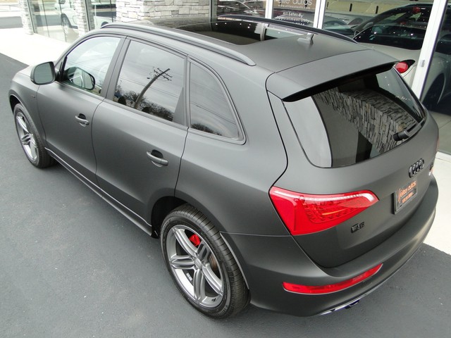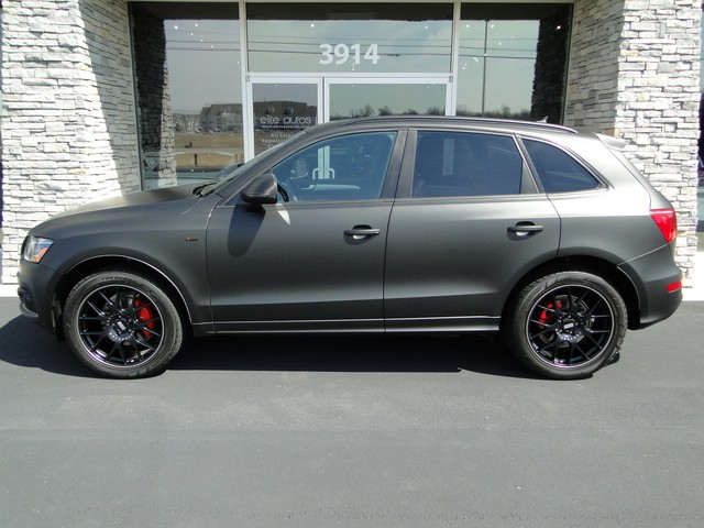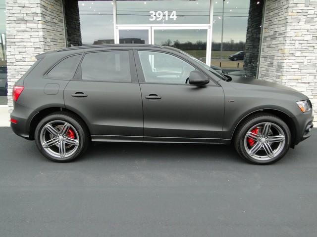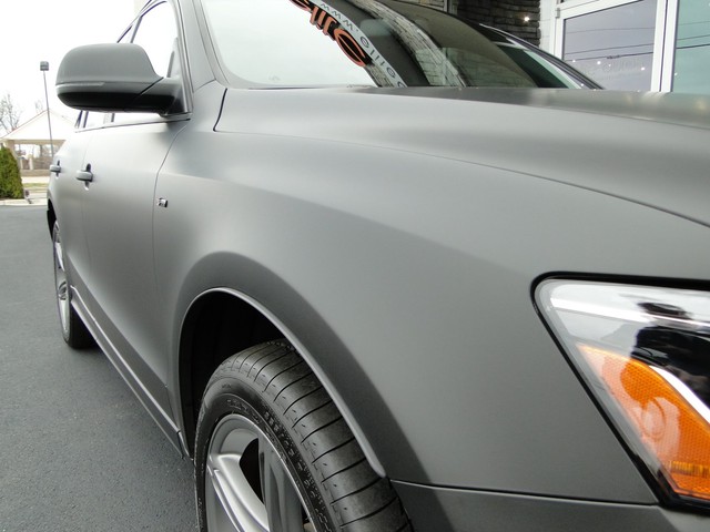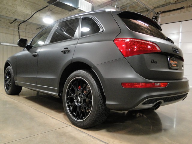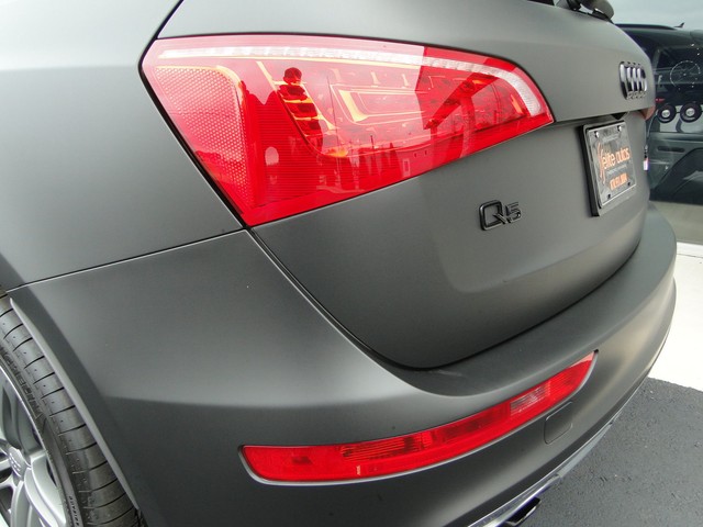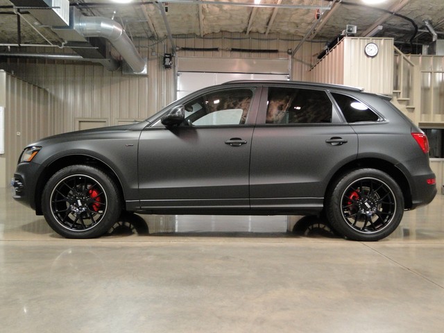 This Q5 has been wrapped in matte black for a stealthy exterior appearance over a all black leather interior. Some of the standard equipment options include: