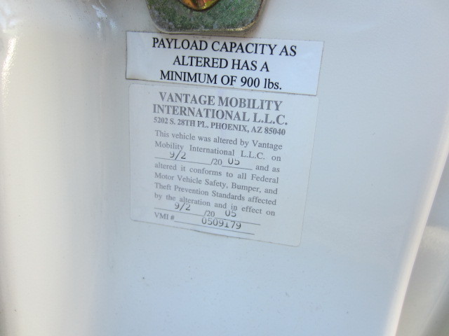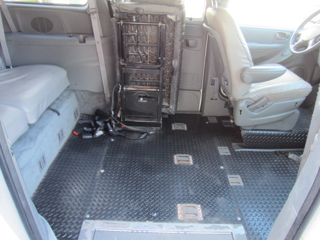 This van has been customized with a power side door wheelchair lift which can be controlled from the drivers seat or from remote control or rear passenger area. The lift stows away under the floor which gives more room inside the cabin. The driver's seat can be removed and a wheel chair locked in its place. Additionally, the second row seat has the option of lifting up to let the wheelchair inside and then lowers down for additional seating capacity. Once the ramp lowers, the van kneels down for easy entrance or exit.