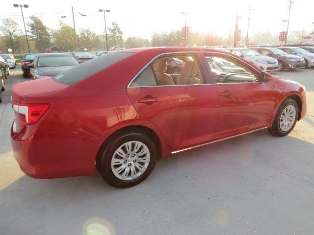 CARFAX 1-Owner, Excellent Condition, Toyota Certified, GREAT MILES 3,046! LE trim. FUEL EFFICIENT 35 MPG Hwy/25 MPG City! iPod/MP3 Input, Bluetooth, CD Player, Overhead Airbag, 8-WAY PWR DRIVER SEAT, 3M WINDOW TINT. READ MORE!KEY FEATURES INCLUDEiPod/MP3 Input, Bluetooth, CD Player MP3 Player, Keyless Entry, Remote Trunk Release, Steering Wheel Controls, Child Safety Locks.OPTION PACKAGESCarpeted Floor Mat Set : 3M Window Tint : 8-Way Pwr Driver Seat : pwr driver lumbar support. LE with Barcelona Red Metallic exterior and Ivory interior features a 4 Cylinder Engine with 178 HP at 6000 RPM*. Serviced here, Originally bought here, Local Trade.EXPERTS ARE SAYINGWith its well-rounded nature and long-standing history of dependability, the 2013 Camry stands as one of the top choices in the highly competitive midsize sedan segment. -Edmunds.com. Great Gas Mileage: 35 MPG Hwy.SHOP WITH CONFIDENCECARFAX 1-Owner 160-Point Inspection and Reconditioning, Vehicle History Report, 12-Month/12, 000-Mile Comprehensive Warranty from date of purchase, 7-Years/100, 000-Mile Powertrain Warranty from date of purchase as new, 1 Year of Roadside AssistanceBUY FROM AN AWARD WINNING DEALERPrice LeBlanc Toyota has been serving Baton Rouge, Gonzales, Prairieville, Maurpeas, St. Gabriel, Iberville Parish, Donaldsonville, LaPlace and Gramercy for over 40 years. You'll know our commitment to Customer Service is second to none. From our showroom and service department to our Tropical Smoothie Cafe' to our three different waiting areas you'll see that we're here to please you. With a huge selection of new Toyota cars, trucks, SUV's, Scions, and Certified used Toyota vehicles.Pricing analysis performed on 3/14/2014. Horsepower calculations based on trim engine configuration. Fuel economy calculations based on original manufacturer data for trim engine configuration. Please confirm the accuracy of the included equipment by calling us prior to purchase.