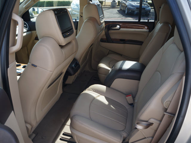 CARFAX 1-Owner, Buick Certified. Premium trim. $1,700 below NADA Retail! Moonroof, Nav System, Third Row Seat, Heated Leather Seats, Entertainment System, All Wheel Drive, Chrome Wheels, Head Airbag, Hitch, Quad Bucket Seats. CLICK NOW!======THIS ENCLAVE IS COMPLETELY EQUIPPED: AUDIO SYSTEM WITH NAVIGATION AM/FM stereo CD player, MP3 playback, Advanced Bose 10-speaker system and navigation with backup camera, includes auxiliary audio jack which enables plug/play connection of all auxiliary audio players, speed-compensated volume, Theftlock, Radio Data System (RDS) and rear audio controls with 2 headphone jacks (headphones not included). 115v outlet and USB port included, LPO, REAR SEAT DVD ENTERTAINMENT SYSTEM includes 2 head restraint-mounted 7-inch diagonal LCD monitors, dual built-in DVD players, 2 wireless headphones and wireless remote, SUNROOF, POWER tilt-sliding with additional skylight fixed glass aft of the sliding glass and sunshade, TRAILERING PROVISION PACKAGE 4500 lbs. includes (V08) heavy-duty engine cooling system, (VR2) trailer hitch and (QD5) compact aluminum spare wheel, ENGINE, 3.6L VARIABLE VALVE TIMING V6 WITH SIDI (SPARK IGNITION DIRECT INJECTION), DOHC (288 hp [214.7 kW] @ 6300 rpm, 270 lb-ft of torque [364.5 N-m] @ 3400 rpm) (STD), 1SN PREFERRED EQUIPMENT GROUP Includes Standard Equipment ======BUICK ENCLAVE: UNMATCHED DEPENDABILITY: 24-hour Roadside Assistance, 172-Point Vehicle Inspection and Reconditioning Process, Vehicle History Report, 3-Day/150-Mile Satisfaction Guarantee CARFAX 1-Owner. Qualifies for CARFAX Buyback Guarantee. ======THIS ENCLAVE PROVIDES EXCEPTIONAL VALUE: This Enclave is priced $1, 700 below NADA Retail. ======KEY FEATURES ON THIS ENCLAVE INCLUDE: Heated/Cooled Leather Seats, Heated Mirrors, All Wheel Drive, Third Row Seat, Quad Bucket Seats Privacy Glass Pricing analysis performed on 3/4/2014. Horsepower calculations based on trim engine configuration. Please confirm the accuracy of the included equipment by callin