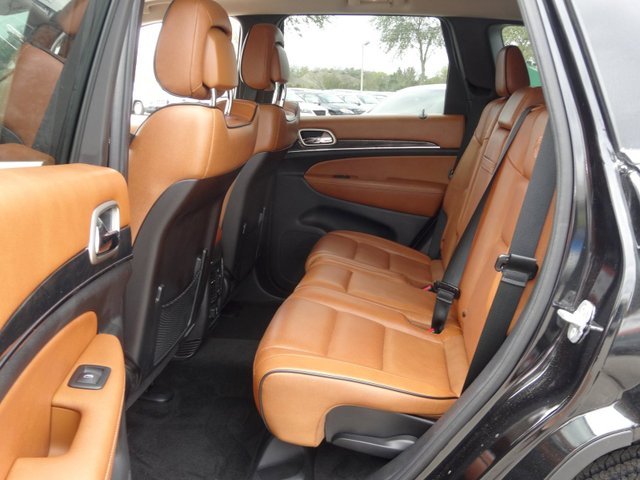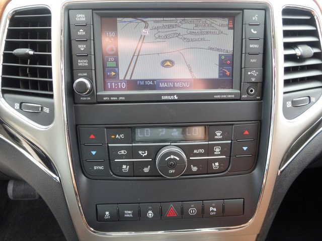 The options and features include: Advanced Multi-Stage Frontal Airbags, Front Seat-Mounted Side Airbags, Front/Rear Side Curtain Airbags, Parksense Rear Park Assist System, Parkview Rear Back-Up Camera, SentryKey Immobilizer & Security Alarm, AM/FM/CD/DVD/HDD/MP3 Player, Automatic Dual-Zone Temperature Control, Driver Seat/Radio/Mirror Memory System, Electronic Speed Control, Garmin Navigation System, Power Door Locks, Power Heated/Ventilated Front Seats, Power Liftgate, Power Tilt/Telescopic Steering Wheel, Power Windows w/One-Touch Up/Down, Premium Leather-Trimmed Upholstery, Uconnect Hands-Free Phone Capability, Universal Garage Door Opener, Voice Recognition System, Dual-Pane Panoramic Sunroof w/Power Sunshade, Keyless Enter'n Go System, Power Heated Multi-Function Exterior Mirrors, Rain Sensitive Windshield Wipers, Remote Start System, 4-Wheel Disc Anti-Lock Brakes, Brake Assist, Electronic Stability Control, Hill Start Assist, Quadra-Drive II 4-Wheel Drive System, Quadra-Lift Air Suspension System, Sequential Multi-Port Electronic Fuel Injection