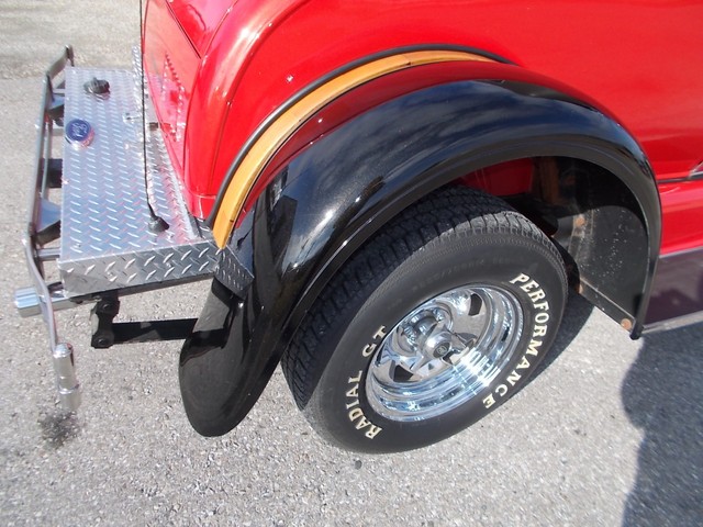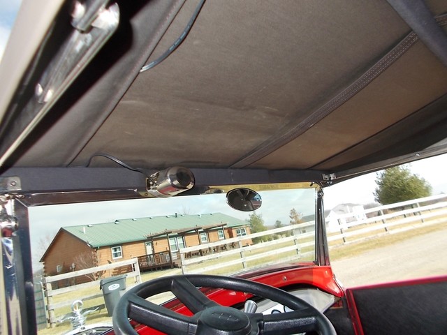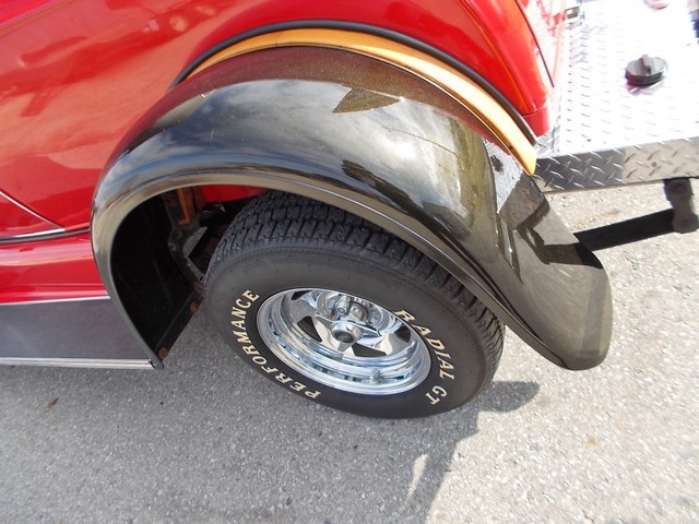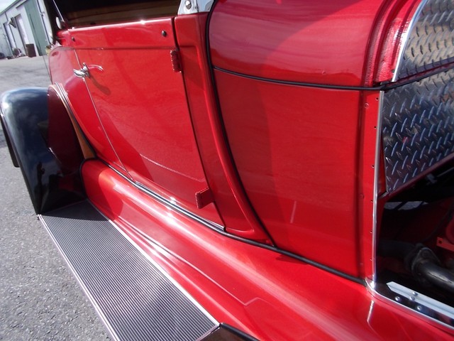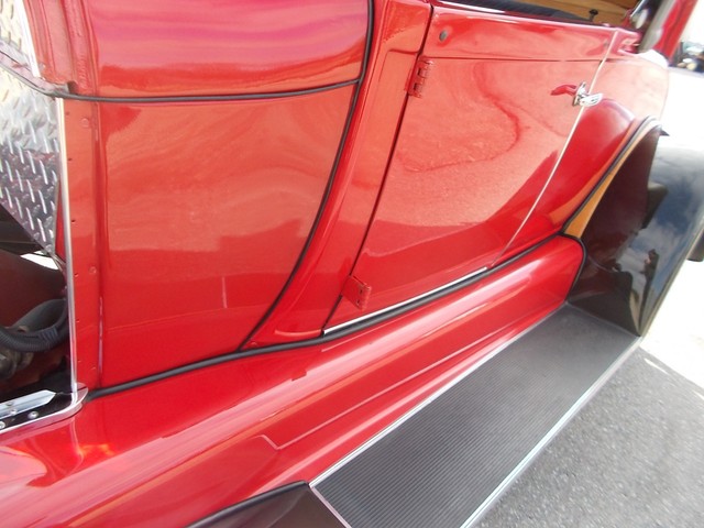 TOP IS IN NICE CONDITION AND HAS NICE CHROME FOLDING TOP FRAME. CHROME BUMPERS ARE REAL NICE. PAINT IS REALLY NICE WITH METALIC IN THE RED AND BROWN ON FENDERS. DARK BROWN TO MATCH THE TOP. EXCELLENT WOOD WORK ON CAR. NICE WINSHIELDAND FRAME. THERE ARE A FEW CHIPS. HAS TILT WHEEL. HAS STEREO TAPE. BEEP BEEP HORN. ALSO HAS REESE HITCH. NO SIDE CURTAINS, NO HOOD AND NO HEATER. IF YOU DONT LIKE THE DIAMOND PLATE YOU REMOVE A FEW SCREWS AND IT COMES RIGHT OFF.