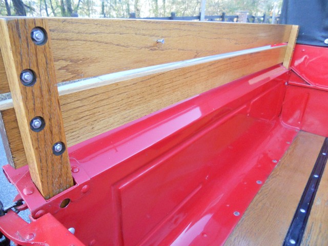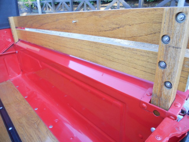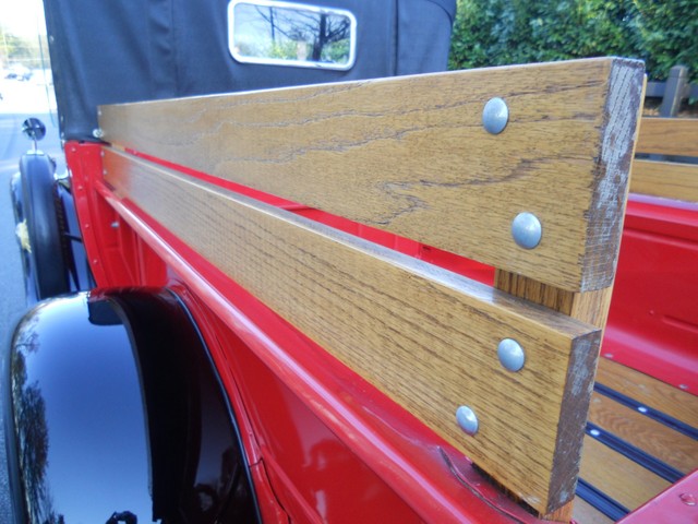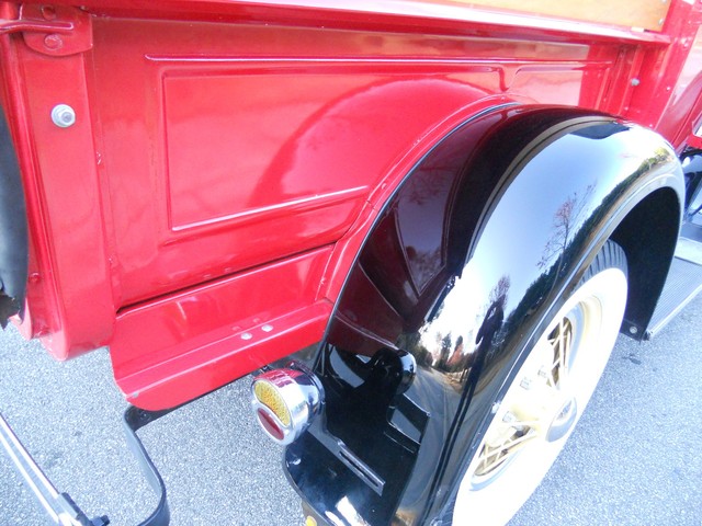 THE BODY PANELS LINE UP WELL. THE PAINT IS GLOSSY WITH A DEEP FINISH WITH SOME SMALL FLAWS. THIS TRUCK HAS A HIGH GRADE DRIVER QUALITY PAINT. THERE ARE A FEW SMALL CHIPS THAT HAVE BEEN TOUCHED UP. THE AREA ON TOP OF THE DOORS DIRECTLY BELOW THE SIDE WIND DEFLECTORS HAVE SOME LIGHT CHIPPING THAT HAVE BEEN TOUCHED UP. THE FRAME, FLOOR, TRUCK BED, THE BOX FRAME UNDER THE SEAT ARE RUST-FREE. THE FRONT BUMPER, GRILL, HEADLIGHT BUCKETS, AND MISC. TRIM ARE IN EXCELLENT CONDITION. THE REAR BUMPER HAVE SOME LIGHT FADING AND MINOR SCRATCHES. THE WINDSHIELD IS IN GOOD CONDITION. THE WINDSHIELD LOWER RUBBER GASKET NEEDS REPLACEMENT. A NEW ONE WILL BE GIVEN TO THE BUYER. THE CONVERTIBLE TOP AND THE FRAME ARE ONLY COUPLE OF YEARS OLD. THERE ARE NO SIDE WINDOWS. THE BED AND WOOD INSERTS ARE IN VERY GOOD CONDITION. ALL 6 WHEELS ARE FINISHED NICELY. THE TIRES ARE IN GOOD CONDITION.