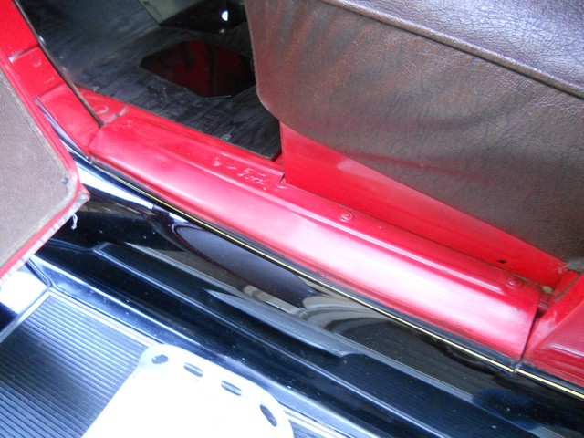 THE UNDER-DASH, DASH FACIA, FLOOR SURROUND, AND AREA UNDER THE SEAT WERE REFINSHED AND PAINTED DURING THE RESTORATION.  THE FLOOR WOOD PANELS WERE REPLACED. THE FLOOR RUBBER MAT ANDTHE INSTRUMENT PANEL LOOK LIKE NEW. THE SEAT BOTTOM, BACK CUSHION AND DOOR PANELS ARE IN VERY GOOD CONDITION. THE STEEERING WHEEL IS IN EXCELLENT CONDITION.