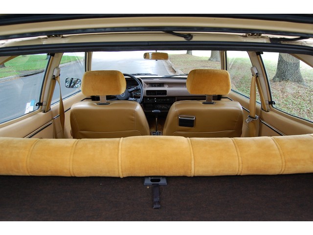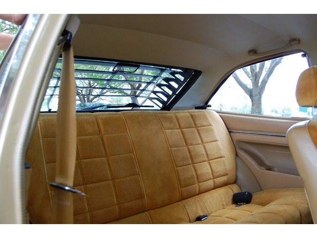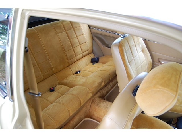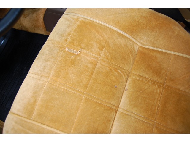 The interior is striking and all original.  Small tear in drivers seat which is pictured.  Carpeting is still soft and nice.  Original mats are in excellent condition.  The drivers seat belt does not retract back into place.  The headliner is original and nice.  Everything works inside including the radio (left main radio knob broke off and needs to be repaired).  The rear latch needs to be propped up as the hydraulic shocks are weak.