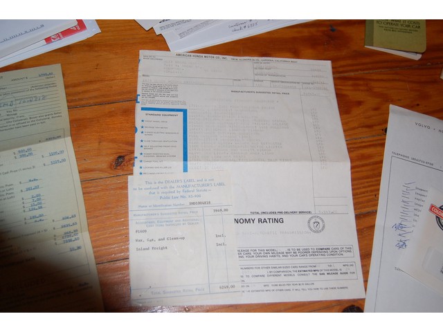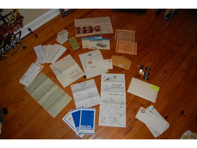 As I mention the paperwork is thick and documents the low mileage.  I also have two ignition keys, an original Honda key, and all of the keys required to lift the rear window louvers.