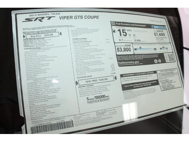 • GTS New Manual Coupe 8.4L NAV 12 Speakers V-10 640HP open MSO Dodge Viper