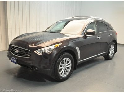Super clean inside and out - this 2010 Infiniti FX35 AWD was very well cared for by it's previous owner.  It has a clear AutoCheck history and never smoked in.  Factory equipment: All Wheel Drive, Tow Hooks, Power Steering, 4-Wheel Disc Brakes, Aluminum Wheels, Tires - Front All-Season, Tires - Rear All-Season, Temporary Spare Tire, Sun/Moonroof, Sun/Moon Roof, HID headlights, Automatic Headlights, Fog Lamps, Heated Mirrors, Power Mirror(s), Power Folding Mirrors, Privacy Glass, Intermittent Wipers, Variable Speed Intermittent Wipers, AM/FM Stereo, CD Player, Premium Sound System, MP3 Player, Auxiliary Audio Input, Hard Disk Drive Media Storage, Bluetooth Connection, Satellite Radio, Bucket Seats, Power Driver Seat, Power Passenger Seat, Driver Adjustable Lumbar, Leather Seats, Pass-Through Rear Seat, Rear Bench Seat, Power Outlet, Floor Mats, Cruise Control, Steering Wheel Audio Controls, Leather Steering Wheel, Adjustable Steering Wheel, Trip Computer, Power Windows, Power Door Locks, Keyless Entry, Engine Immobilizer, Keyless Start, Universal Garage Door Opener, Remote Trunk Release, Climate Control, Multi-Zone A/C, Rear A/C, Rear Defrost, Auto-Dimming Rearview Mirror, Driver Vanity Mirror, Passenger Vanity Mirror, Driver Illuminated Vanity Mirror, Passenger Illuminated Visor Mirror, Front Reading Lamps, Rear Reading Lamps, ABS, Brake Assist, Traction Control, Stability Control, Driver Air Bag, Passenger Air Bag, Passenger Air Bag Sensor, Front Side Air Bag, Front Head Air Bag, Rear Head Air Bag, Back-Up Camera, Child Safety Locks, Tire Pressure Monitor.