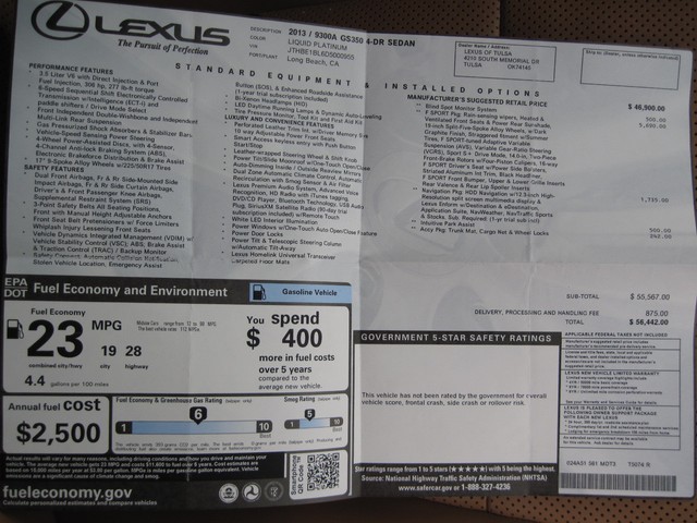 13 GS F Type F 4DR SDN RWD 3.5L 3.5 liter V6 DOHC engine 306 hp 4 Doors