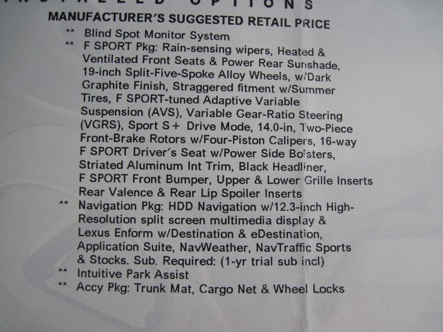Are you interested in a simply terrific car? Then take a look at this tip-top Sedan* This Sedan won't last long! Less than 17k miles!!! You don't have to worry about depreciation on this pampered 4DR SDN RWD!!!!.. New Inventory.. Spotless!!! CARFAX 1 owner and buyback guarantee* Great safety equipment to protect you on the road: ABS Xenon headlights Traction control Curtain airbags Passenger Airbag...NICELY EQUIPPED: F-sport pckg, Blind spot, Nav w/ HDD, park assist, Leather seats, Bluetooth, Power locks, Power windows, Sunroof, and more... Call me today for pricing or to make it yours. Ask for Randy in Ebay or 405-227-6083