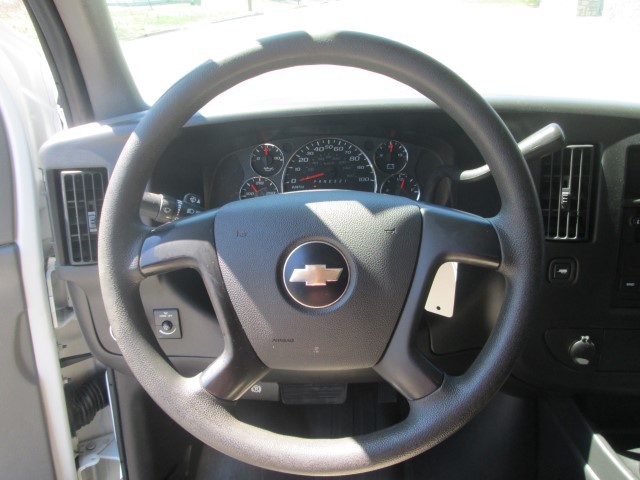 This is a 1 owner 2009 Chevrolet Express 2500 Extended Cargo van that has been well maintained, I buy every vehicle from this company that I can because of the way that they maintain all their equipment.  It has the 4.8 liter V8 and of course an automatic transmission.  Everything appears to be in working order and there is no hint of it being a smokers van inside.  This van has a bulk head divider with a locking door, bins and racks inside along with freon racks and it has a ladder rack on top.  The tires are matching but probably in the 40% - 50% range.  The windsheild is cracked up high not in the drivers veiw.  It has less than the usual dings both in a nd out dings that you get on cargo vans.   Both bumper have minor dings and scratch.  The driver seat has a very faint crack and 1 small snag.  Again it is a 1 owner accident free van according to Car Fax.