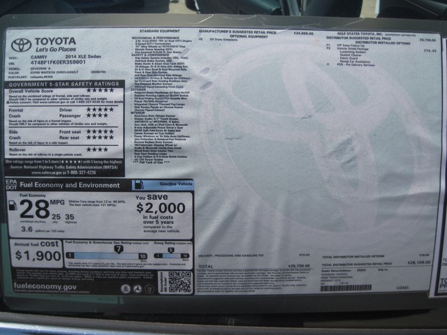 New 14 Camry XLE. This qualifies for the 0% for 72 or you get $1500 more rebate as of today. Not sure what the incentives will change to tomorrow. This one has power all, roof, bluetooth, climate control, alloy wheels, wood grain, and more. Please contact me with questions on options and the buy it now pricing. Randy at 405-227-6083 or send a email in. Thanks for looking!