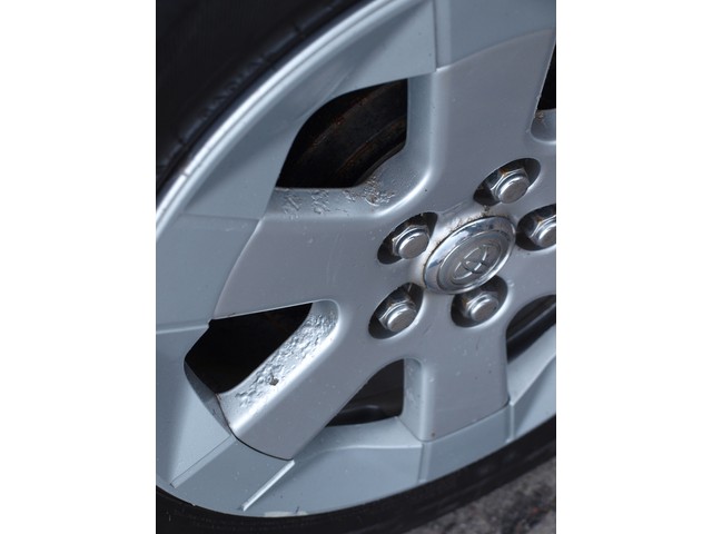THERE ARE SOME LIGHT SCRATCHES ON DOORS AND A VERY SMALL DENT ON FENDER. SMALL PITTING ON 3 OF THE WHEELS.