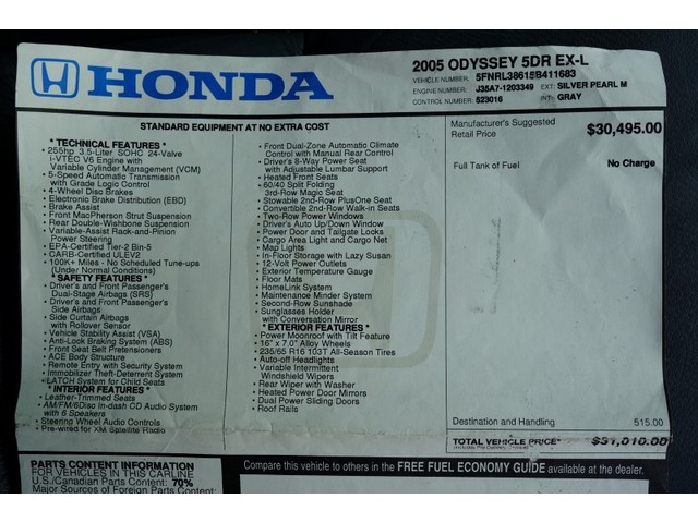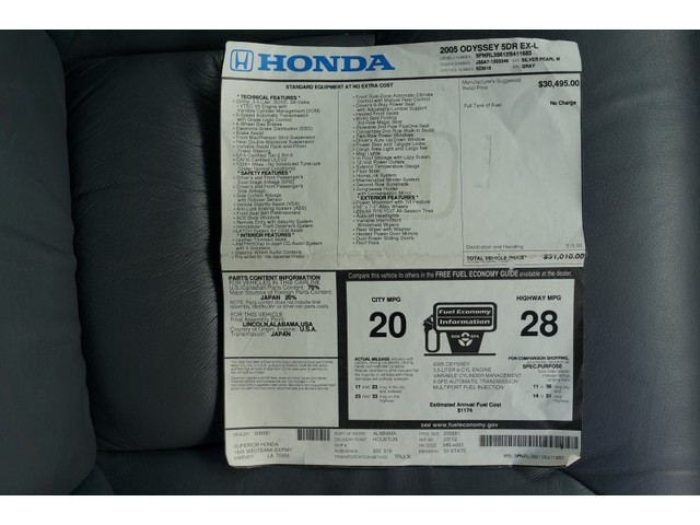Hello and Welcome to the advertisement of Ultra Motorcars!  Up for Sale is a Xtra Clean,  2 Owner, Texan Rust Free 2005 Honda Odyssey EX-L.   his Odyssey is one of a kind, it is clean it is inside and out.   It is a Texan Rust Free vehicle, with absolutely no accident reports.  The title is clear and clean for this vehicle.  We have pulled an Auto Check and Carfax report on this  1 Owner Odyssey which clearly states, there is no accident or bad title history on this vehicle.   This vehicle has 111k highway miles, which has a great ride and drive. The engine and transmission is very solid. This vehicle has a smooth ride to it.
