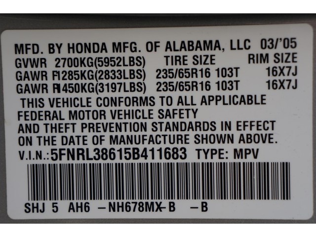 05 HONDA ODYSSEY EX-L 2 OWNER CARFAX CERT LEATHER HTD STS MROOF CD CHGER CLEAN!!