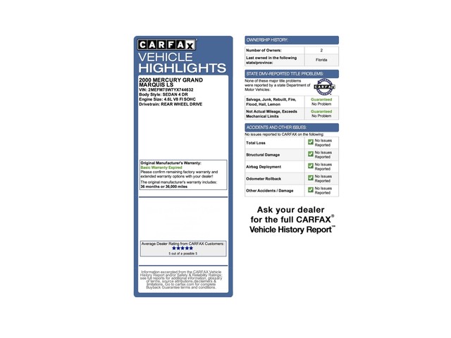 You are viewing a 2000 Mercury Grand Marquis LS Ultimate  with only 46,264 miles!