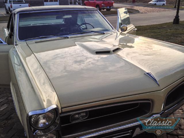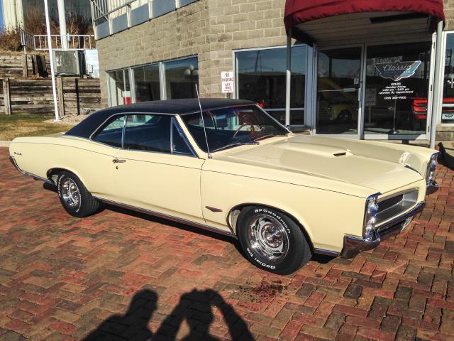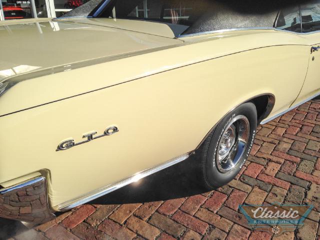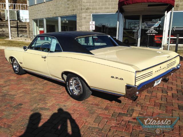 1966 Pontiac GTO Tri- Power A/C AT Hardtop. VIN 242176K132148. Assembled on The 3rd Week of May 1966 In Kansas City Mo. Shipped to Leo Jarnagin Pontiac in Ft. Worth Texas. Equipped with Original Type 389 CID/ 335 HP V-8. Optional Rochester 3x2 Tri-Power Carbs on Cast Iron Intake.. MSD Ignition Setup added for Great Performance. Engine Rebuilt in 2010 Including new Water Pump and High Torque Starter. Easy Shifting 4 speed Transmission with Factory Console and Hurst Shifter. Interior Options Include Sony Push Button Radio Elec. Clock and Seat Belts. Working GM Factory Air Conditioning . In Dash Tach and Gauges with Equus Oil Pressure/ Temp Under Dash. Interior Upholstered in Excellent Black Morrokide. Strato Bucket Seats with Optional Console with Storage Bin. Wonder Touch Power Steering Guided By Deluxe Steering Wheel. Finished In High Gloss Candlelight Cream w/ Black Cordova Top. Distinctive GTO Only Features including Grill Hood and Side Trim. Distinctive GTO Only Horizontal Louver Tail Lamp Design. Famous Pontiac Wide Track Full Perimeter Frame. New Pontiac Rallye Wheels Trim Rings and Caps. New Set of BFG Radial T/A RWL Tires 225/70/14. Came to us From Sunny California. This is a Fine Example of American Muscle at it Best. PHS documentation is included with owners manual. ** Can Be Driven Anywhere with a Smile While Humming Little GTO ** Visit Classic Enterprises online at www.classicenterprises.net to see more pictures of this vehicle or call us at 319-366-7600 today to schedule your test drive.