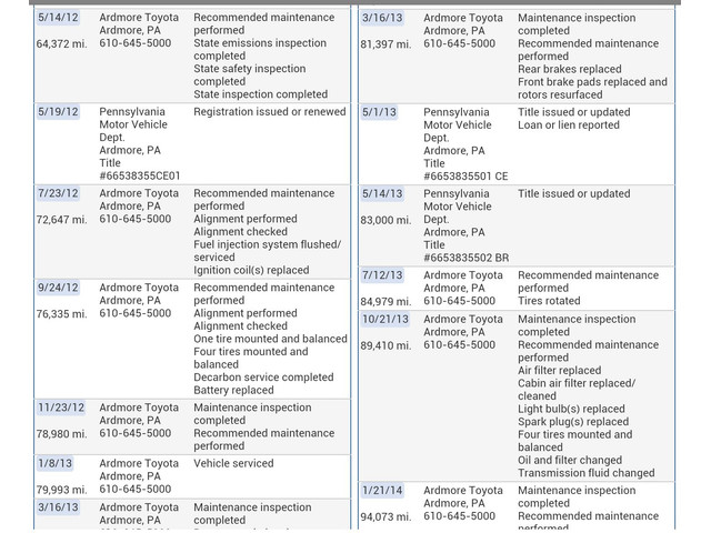 This vehicle was maintained at a Toyota dealership its entire life.  See Carfax Below!