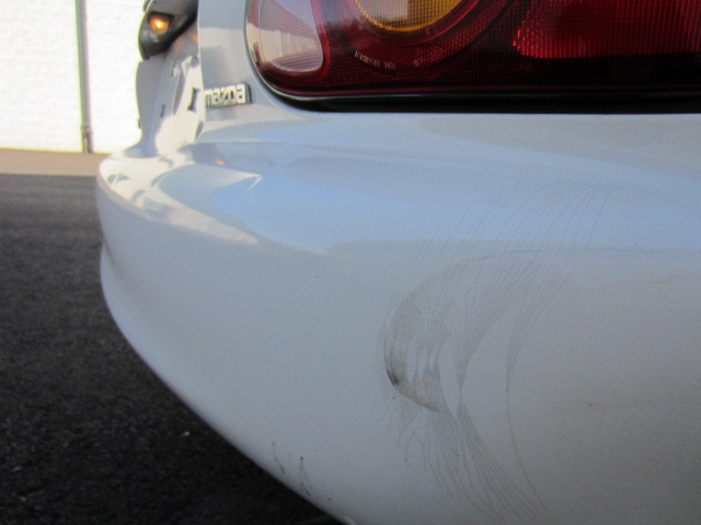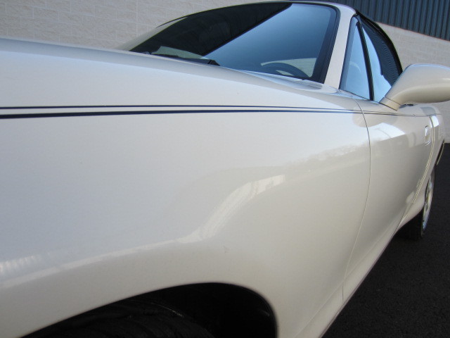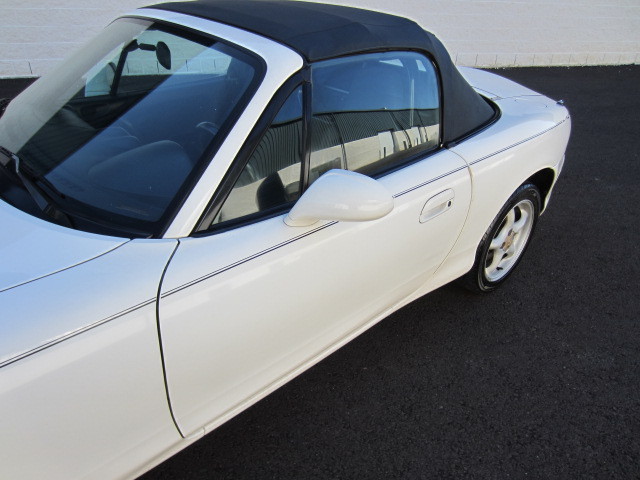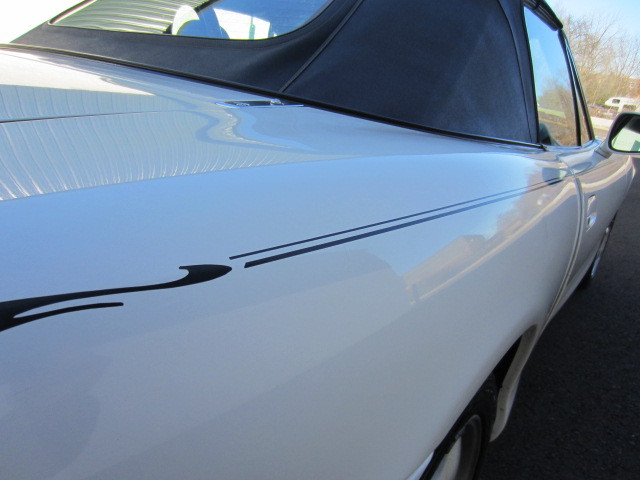 The body is in great shape. The white color really sets this car apart and makes it look extra nice. Car is equipped with alloy wheels. Additional features include power antenna and black convertible top. The top is in excellent condition with no rips or tears. The only issue with the exterior is some minor scuffs on the rear bumper. Otherwise, the car looks solid from the outside. You have to see it to appreciate it!!!