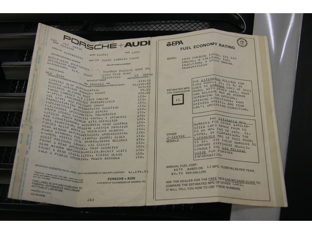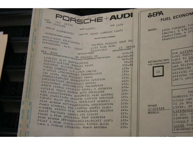 1979 PORSCHE 930 TURBO US CAR ONLY 48,648 ORIGINAL MILES ORIGINAL WINDOW STICKER