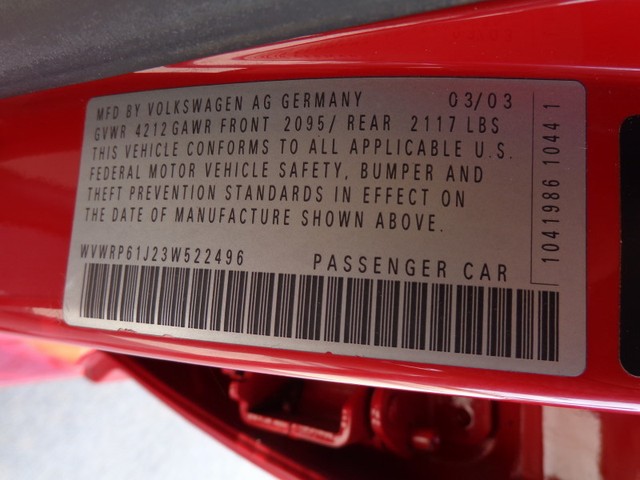 • VIN: WVWRP61J23W522496