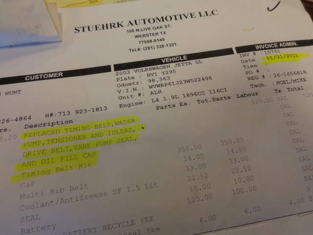 HERE IS A RECORD THE SHOW THE TIMING BELT KIT REPLACED.