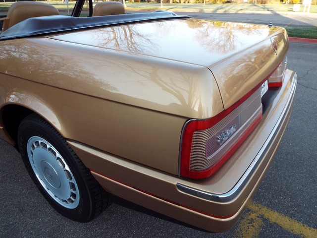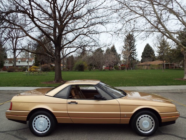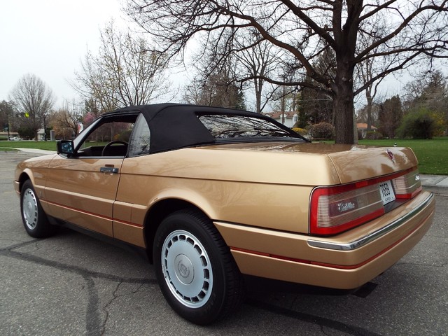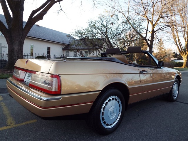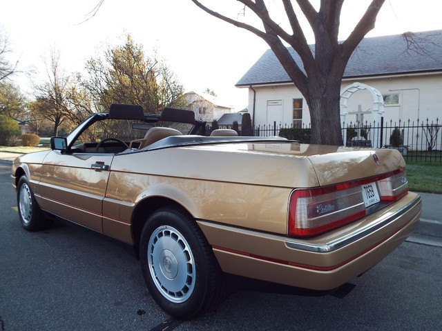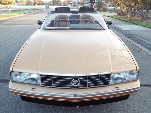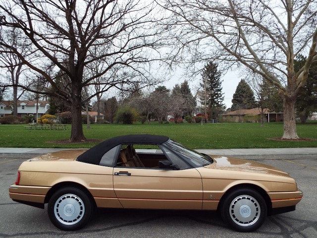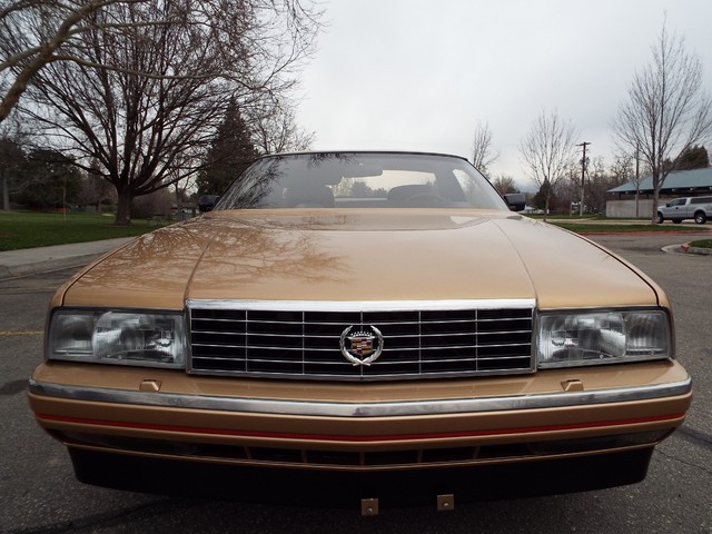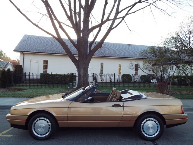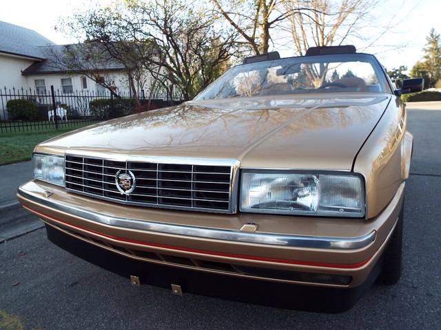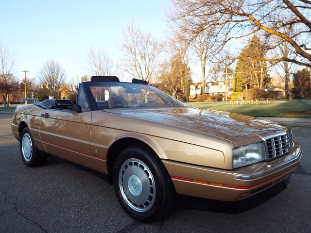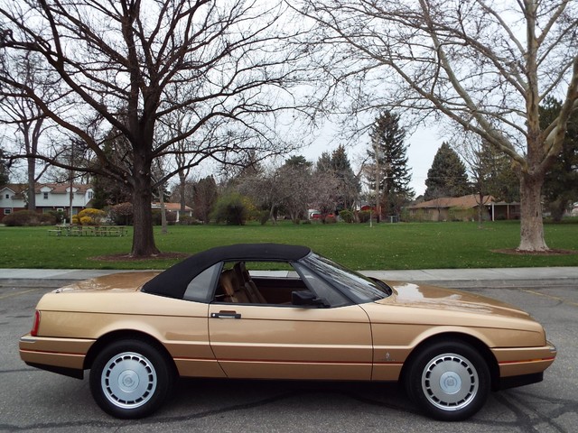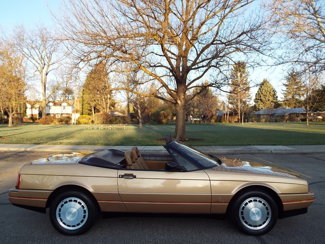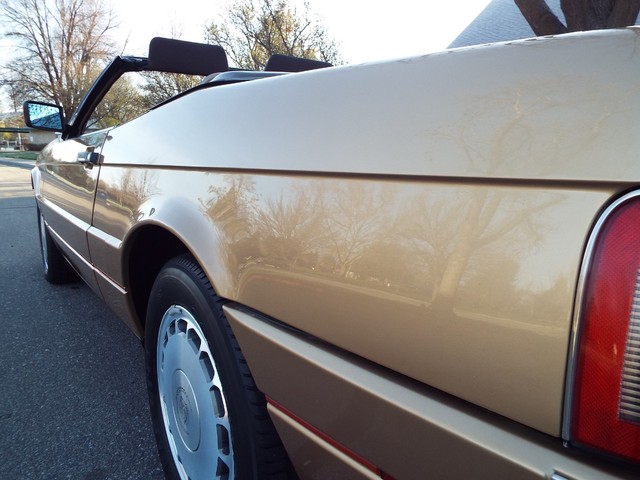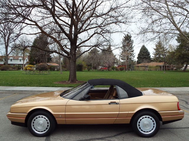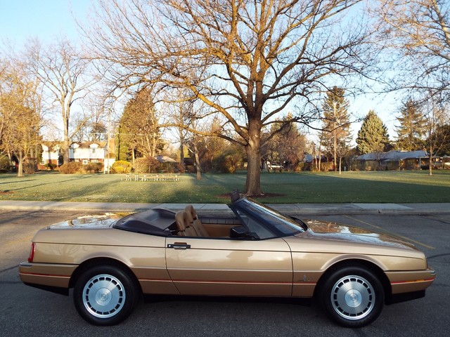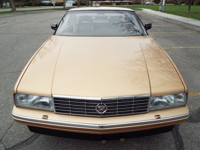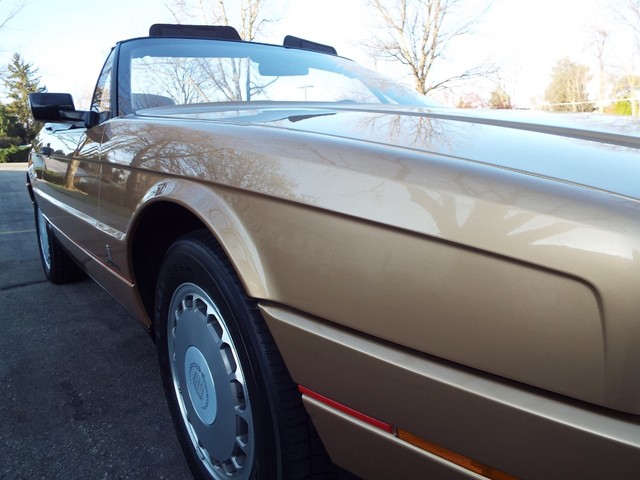 At the heart of this Allante is the STRONG - ORGINAL - Multi Port Fuel Injected - 4.1 Liter V8 motor which is running very well and is equipped from the factory with roller valve lifters, high-flow cylinder heads and also still retains the ORIGINAL Intake planum, Original exhaust manifolds and the ORIGINAL air cleaner housing !! Sounds good too with the nice factory style exhaust system !! The engine is backed by a - SMOOTH - four speed with overdrive automatic transmission which also functions very well. The BEAUTIFUL - ALL FACTORY ORIGINAL !! - Code "632" - Dark Brown Vinyl and Tan Leather Luxury Sport Interior is in VERY NICE condition with NICE ORIGINAL Tan Leather Bucket seats with factory adjustable headrests, VERY NICE ORIGINAL Tan Vinyl center console with padded center armrest, VERY NICE ORIGINAL Allante steering wheel, VERY NICE ORIGINAL matching Dark Brown and Tan vinyl door panels, VERY NICE ORIGINAL Tan carpeting, VERY NICE ORIGINAL Digital gauge clusters, VERY NICE ORIGINAL Dark Brown vinyl dash pad with NO CRACKS, VERY NICE ORIGINAL matching removable hardtop, VERY NICE ORIGINAL Tan vinyl hardtop headliner and VERY NICE ORIGINAL Dark Brown vinyl sunvisors. In my opinion your not going to find a much nicer interior in a 26 year old car than the one that is in this BEAUTY, UNBELEIVABLE !! All of the ORIGINAL rubber weatherstripping is still soft, supple and looks GREAT for being original. The - Code "46U" - Gold Metallic exterior paint is EYE POPPING BEAUTIFUL showing really little to no wear other than a few very small chips and is still bright and shiny and looks STUNNING as you can clearly see in the video above and 100 ADDITIONAL PICTURES BELOW. The Tan Leather interior and the matching Gold Metallic exterior is a GREAT color combination Indeed ! How could you get any better ?!! Check out the NICE ORIGINAL black cloth convertible - power latching - fold down top which has the correct glass rear window and looks nearly new but it is not !! This Luxury Sports Roadster is a great runner and a real nice looker. I drove this car as my everday driver for about a week to and from the office and running errands as needed and it ran and drove GREAT ! Talk about an attention getter, everywhere I went people wanted to know what kind of car it was and how beautiful of a car they thought it was !! In typical Cadillac fashion this car is nicely equipped including WORKING FACTORY AIR CONDITIONING that has just been professionally serviced and blows ICE COLD, factory electronic automatic climate control system, factory power steering, factory 4 way power anti-lock disc brakes, factory power windows, factory power door locks, factory power 10 way adjustable bucket seats, factory seat adjustment memory, factory digital guage clusters with 145 MPH speedometer, center console mounted remote trunk and fuel filler lid release, good glass, factory power delay wipers, tilt and telescoping steering column, factory cruise control, factory rear window defroster, factory delayed headlight sentinel, factory power remote exterior side view mirrors, delayed windshield wipers, factory seat belts, original day / night rear view mirror, trip odometer, factory theft deterent system, headlight washers, factory original Dolby "Symphony Sound" AM / FM stereo radio / Cassette player ( works good but digital display readout has quit working), factory power antenna, factory digital driver information display, factory map lights, dual illuminated vanity mirrors, original day / night rear view mirror and factory back up lights,  This Cadillac Allante' has great looks and GREAT power with good gas mileage to boot! There are not many of these left on the roads that are in this kind of ORIGINAL SURVIVOR condition !!