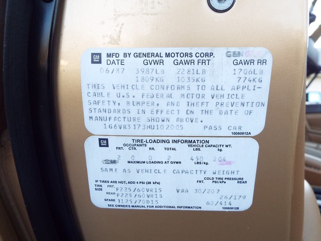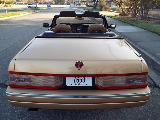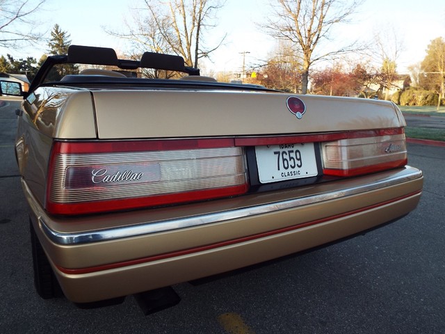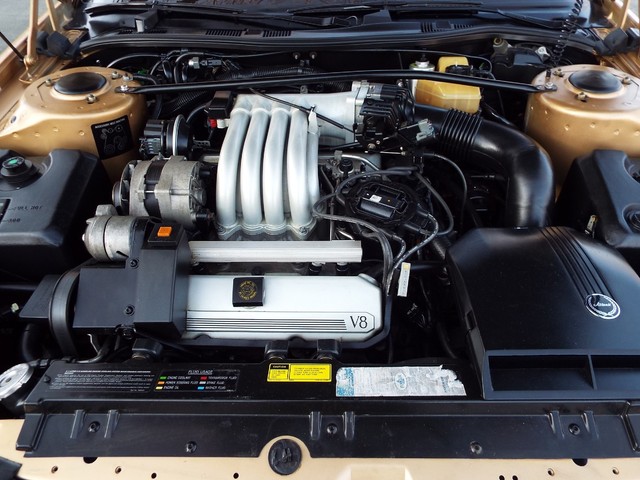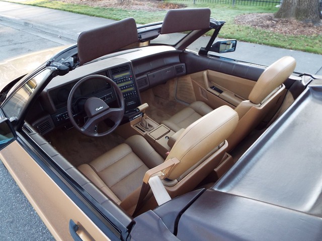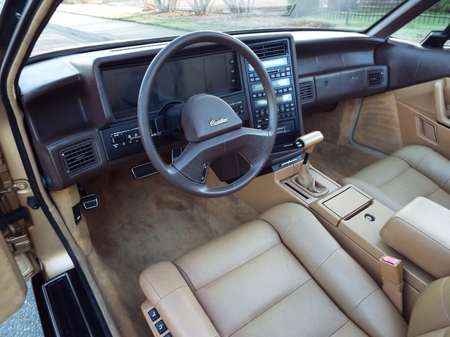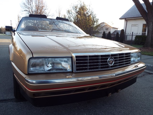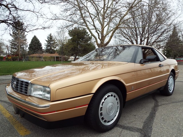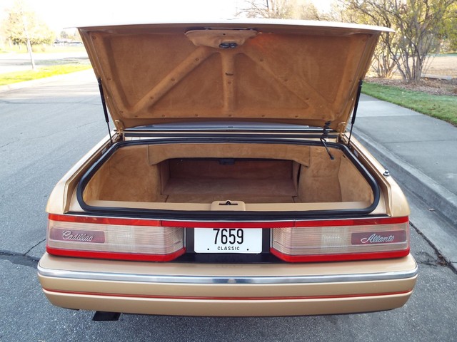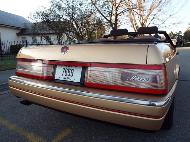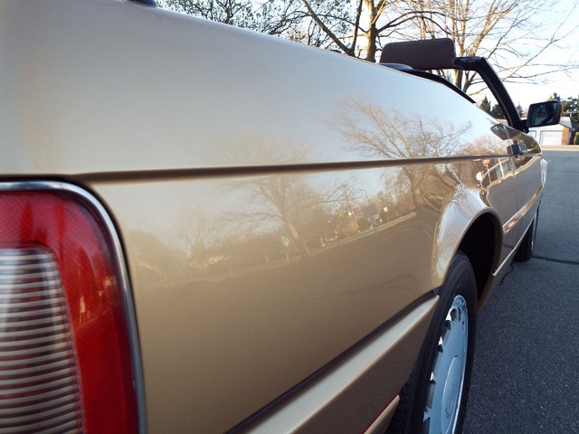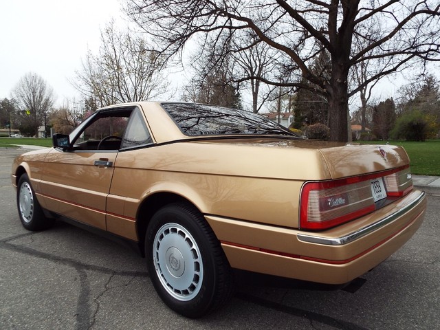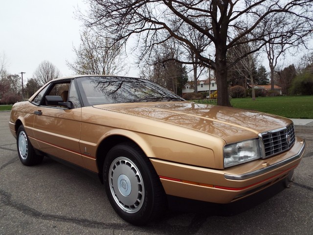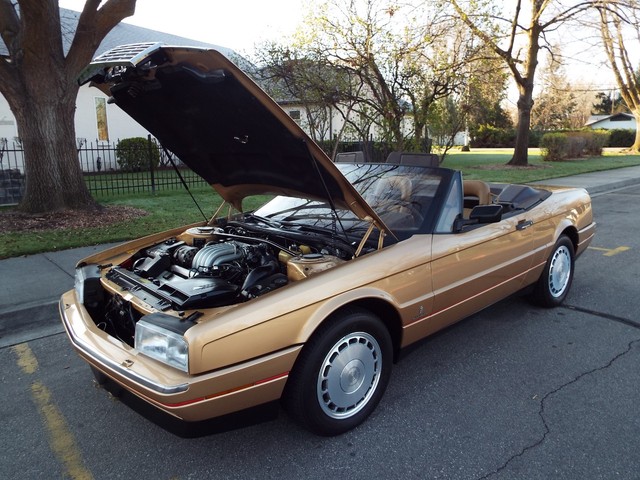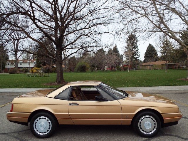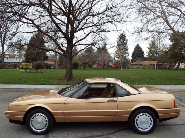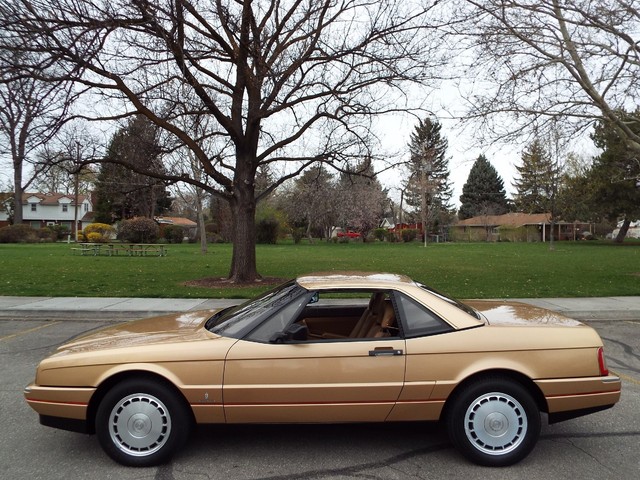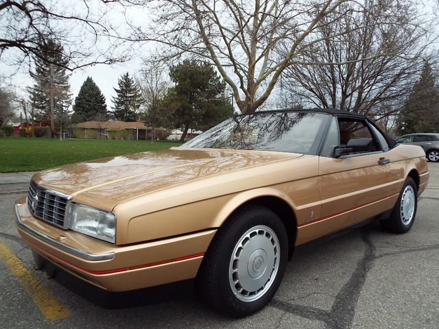 At the heart of this Allante is the STRONG - ORGINAL - Multi Port Fuel Injected - 4.1 Liter V8 motor which is running very well and is equipped from the factory with roller valve lifters, high-flow cylinder heads and also still retains the ORIGINAL Intake planum, Original exhaust manifolds and the ORIGINAL air cleaner housing !! Sounds good too with the nice factory style exhaust system !! The engine is backed by a - SMOOTH - four speed with overdrive automatic transmission which also functions very well. The BEAUTIFUL - ALL FACTORY ORIGINAL !! - Code "632" - Dark Brown Vinyl and Tan Leather Luxury Sport Interior is in VERY NICE condition with NICE ORIGINAL Tan Leather Bucket seats with factory adjustable headrests, VERY NICE ORIGINAL Tan Vinyl center console with padded center armrest, VERY NICE ORIGINAL Allante steering wheel, VERY NICE ORIGINAL matching Dark Brown and Tan vinyl door panels, VERY NICE ORIGINAL Tan carpeting, VERY NICE ORIGINAL Digital gauge clusters, VERY NICE ORIGINAL Dark Brown vinyl dash pad with NO CRACKS, VERY NICE ORIGINAL matching removable hardtop, VERY NICE ORIGINAL Tan vinyl hardtop headliner and VERY NICE ORIGINAL Dark Brown vinyl sunvisors. In my opinion your not going to find a much nicer interior in a 26 year old car than the one that is in this BEAUTY, UNBELEIVABLE !! All of the ORIGINAL rubber weatherstripping is still soft, supple and looks GREAT for being original. The - Code "46U" - Gold Metallic exterior paint is EYE POPPING BEAUTIFUL showing really little to no wear other than a few very small chips and is still bright and shiny and looks STUNNING as you can clearly see in the video above and 100 ADDITIONAL PICTURES BELOW. The Tan Leather interior and the matching Gold Metallic exterior is a GREAT color combination Indeed ! How could you get any better ?!! Check out the NICE ORIGINAL black cloth convertible - power latching - fold down top which has the correct glass rear window and looks nearly new but it is not !! This Luxury Sports Roadster is a great runner and a real nice looker. I drove this car as my everday driver for about a week to and from the office and running errands as needed and it ran and drove GREAT ! Talk about an attention getter, everywhere I went people wanted to know what kind of car it was and how beautiful of a car they thought it was !! In typical Cadillac fashion this car is nicely equipped including WORKING FACTORY AIR CONDITIONING that has just been professionally serviced and blows ICE COLD, factory electronic automatic climate control system, factory power steering, factory 4 way power anti-lock disc brakes, factory power windows, factory power door locks, factory power 10 way adjustable bucket seats, factory seat adjustment memory, factory digital guage clusters with 145 MPH speedometer, center console mounted remote trunk and fuel filler lid release, good glass, factory power delay wipers, tilt and telescoping steering column, factory cruise control, factory rear window defroster, factory delayed headlight sentinel, factory power remote exterior side view mirrors, delayed windshield wipers, factory seat belts, original day / night rear view mirror, trip odometer, factory theft deterent system, headlight washers, factory original Dolby "Symphony Sound" AM / FM stereo radio / Cassette player ( works good but digital display readout has quit working), factory power antenna, factory digital driver information display, factory map lights, dual illuminated vanity mirrors, original day / night rear view mirror and factory back up lights,  This Cadillac Allante' has great looks and GREAT power with good gas mileage to boot! There are not many of these left on the roads that are in this kind of ORIGINAL SURVIVOR condition !!