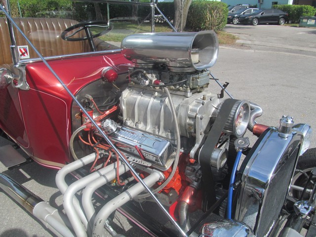 Up For Auction Is A Nice 1923 Ford T-Bucket. Powered By A 355 Cubic Inch 4 Bolt Main Supercharged/Blower V8 Motor & 4 Speed Muncie Manual Transmission. Nice Lopy Crower 506 Lift Cam, 304 Duration, 8.5 Compression, Motor Was Just Rebuilt With Less Then 200 Miles On It. Blower Is A 671, Holley 450 CFM Dual Carbs Mechanical Secondaries, Hillborne Air Scoop, Chrome Moroso Valve Covers, New High Output Alternator, Chrome Pulleys, Chrome Lines, Stainless Steel Braided Lines, New High Output Starter, Chrome Radiator Shroud, 3 Core Radiator Keeps This Motor Running Cool Even In Hot Summer Days, Electric Fan, Hedman Headers With Side Pipes, Performance Hermonic Balancer, New Water Pump, MSD Ignition, MSD Blaster Coil, MSD Performance Wires, Custom Side Steps, Custom Fuel Tank, Custom Pin-Striping, & New Chrome Oil Pan. The Rear End Is A 9" Posi Unit, Wheelie Bars, Stainless Steel Fuel Lines, New Fuel Regulator, New Electric Performance Fuel Pump. The Mag Wheels & Wide Rear Tires Really Give This T-Bucket A Nice Look. This T-Bucket Turns Heads Everywhere It Goes! Located In Ft.Lauderdale Florida. All Bidders Welcome Including International Bidders, Will Ship ANYWHERE At Buyers Expense. If You Have ANY QUESTIONS Please Call