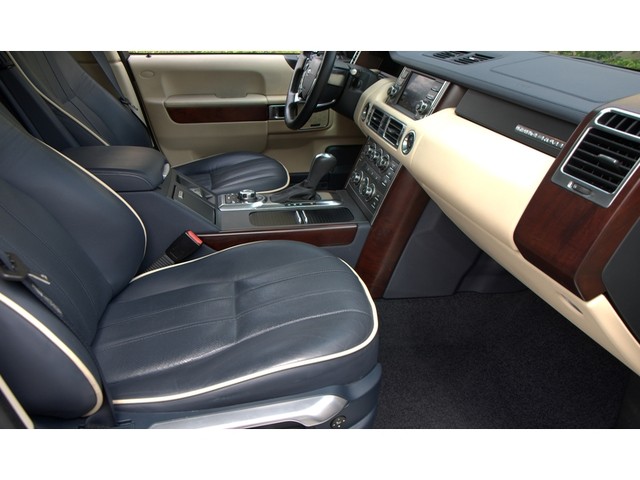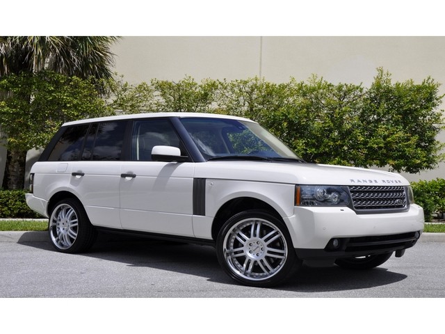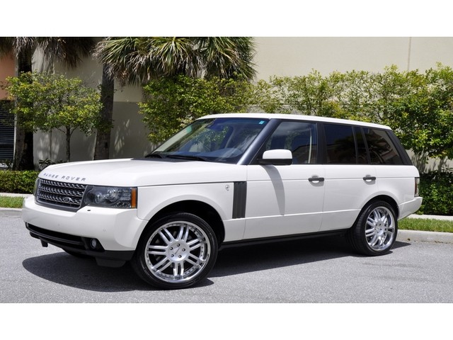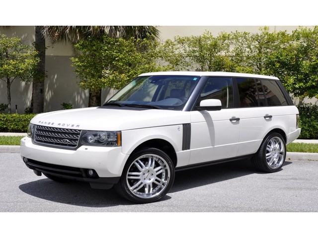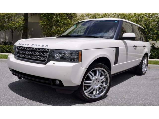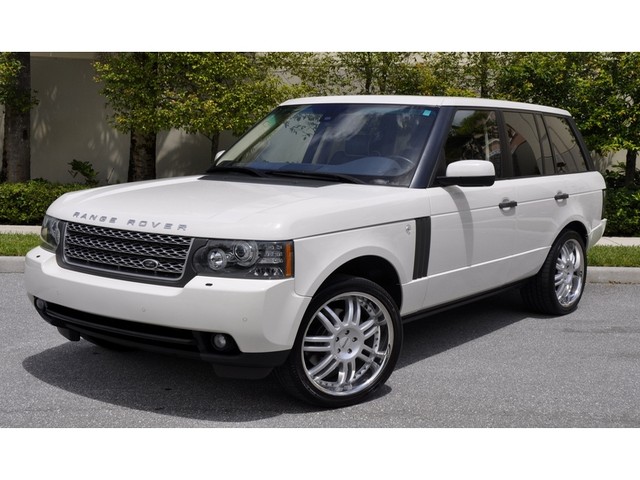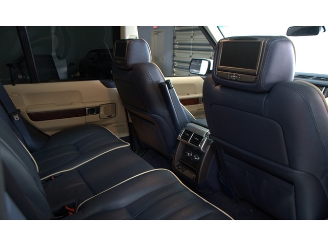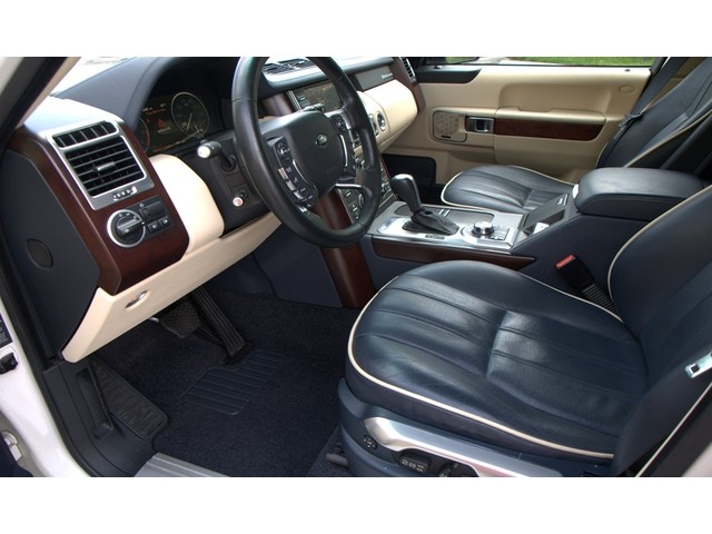 2010 Land Rover Range Rover HSE Luxury with 59850 miles, one-owner, dealer-serviced, finished in White over Navy Blue leather interior.