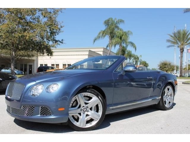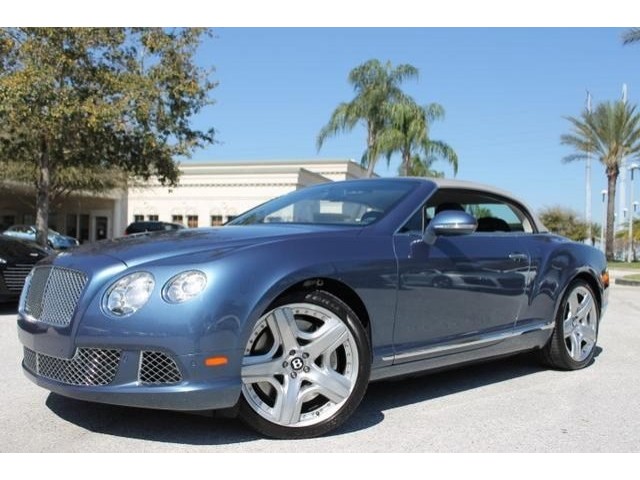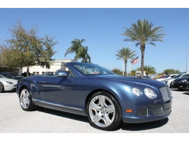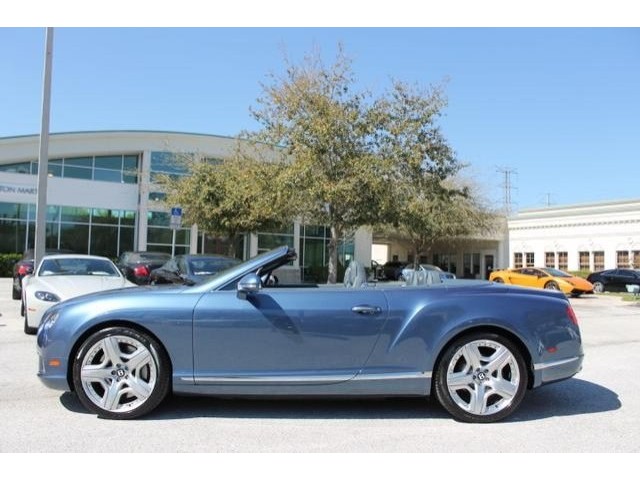 You are viewing a stunning 2012 Bentley GTC. It is finished in Cyrstal Blue Metallic over Blue leather with striking White Stitching. This beautiful convertible carries an original MSRP of right at $253,000! Options include upgraded factory wheels, Mulliner driving specifications and the list goes on.