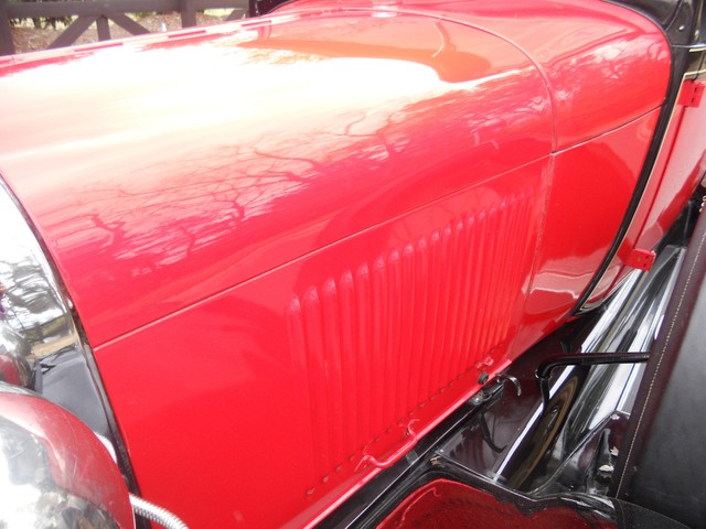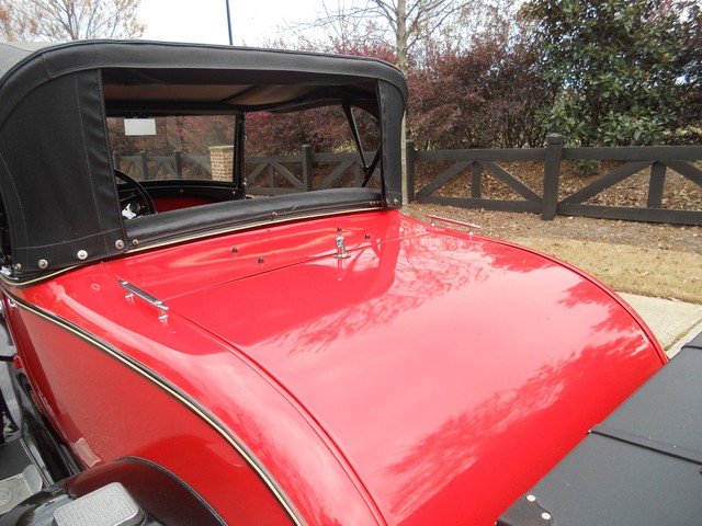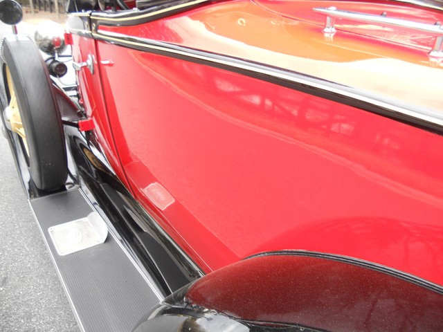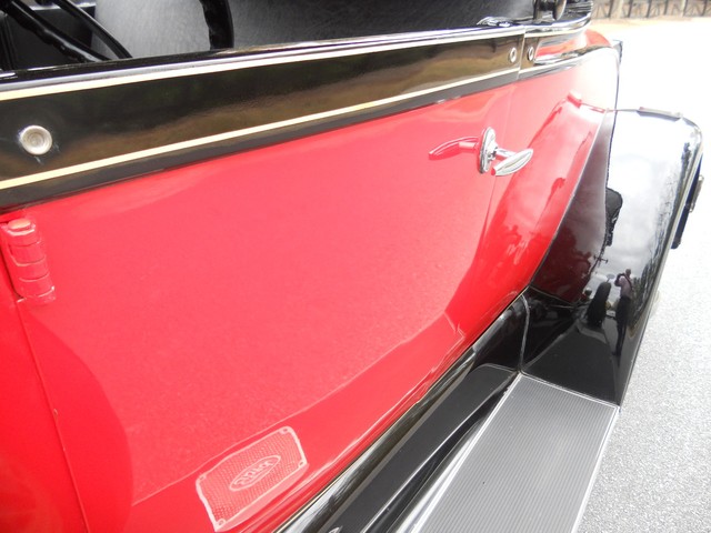 THE BODY PANELS LINE UP WELL. THE DOORS OPEN AND CLOSE WITH EASE AND WITHOUT ANY SAGGING. THE PANELS, FRAME, FLOOR PANS, SEAT BOX, RUMBLE SEAT AREA, FRAME, RUNNING BOARDS, ETC. ARE RUST-FREE. PLEASE VIEW THE UNDER-CARRIAGE PICTURES AT THE END OF THE LISTING. THE PAINT IS GLOSSY WITH SOME FLAWS. IT LOOKS PERFECT FROM 10' AWAY. HOWEVER, AS YOU LOOK CLOSER, YOU WILL FIND SOME CHIPS THAT HAVE BEEN TOUCHED UP AS WELL AS SOME TINY BLISTERS AT RANDOM LOCATIONS. THIS CAR HAS A DRIVER QUALITY PAINT. IF YOU WANT AN 85 YEAR OLD SHOW CAR THEN YOU NEED TO PAINT IT. THE BUMPERS, DOOR HANDLES, HEADLIGHT HOUSINGS, AND MISC. TRIM LOOK VERY NICE WITH SOME MINOR FLAWS. THE WINDSHIELD AND LIGHT LENSES ARE IN EXCELLENT CONDITION. THE CONVERTIBLE TOP AND 4 SIDE WINDOWS LOOK LIKE NEW. THE 6 ORIGINAL WIRE WHEELS WERE REFINISHED IN THE PAST AND STILL LOOK GOOD. THE WIDE WHITEWALL TIRES HAVE PLENTY OF THREADS AND RIDE SMOOTH.