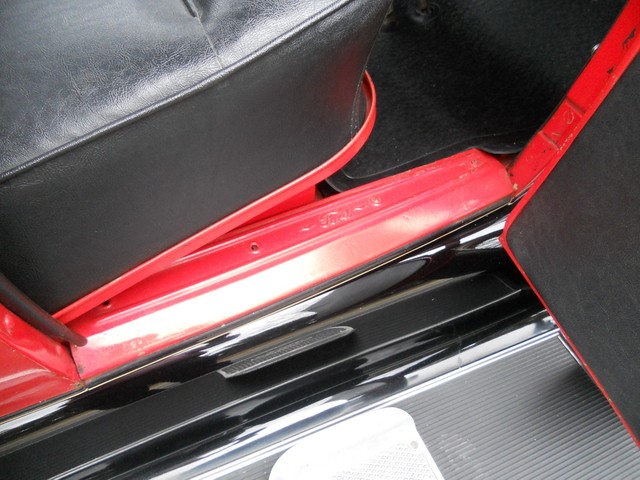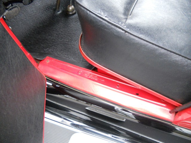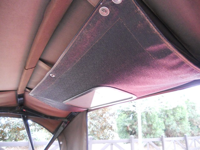 THE SEAT COVERS, DOOR PANELS, AND FLOOR RUBBER MAT ARE IN EXCELLENT CONDITION. THE DRIVER'S BOTTOM CUSHION HAS A SMALL WORN AREA THAT IS NOT VERY NOTICEABLE. THE WOOD FLOOR PANELS ARE IN EXCELLENT CONDITION. THE STEERING WHEEL AND DASH CHROME BEZEL ARE IN VERY GOOD CONDITION. THE AREA BELOW THE BOTTOM CUSHION AND BEHIND THE BACK SEAT ARE SOLID.