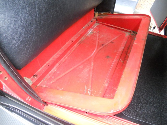 THE SEAT COVERS ARE IN EXCELLENT CONDITION AND THE FLOORS ARE SOLID. THE RUMBLE SEAT LID OPENS AND CLOSE WITH EASE. THE OPTIONAL STORAGE TRUNK LOOKS LIKE NEW.