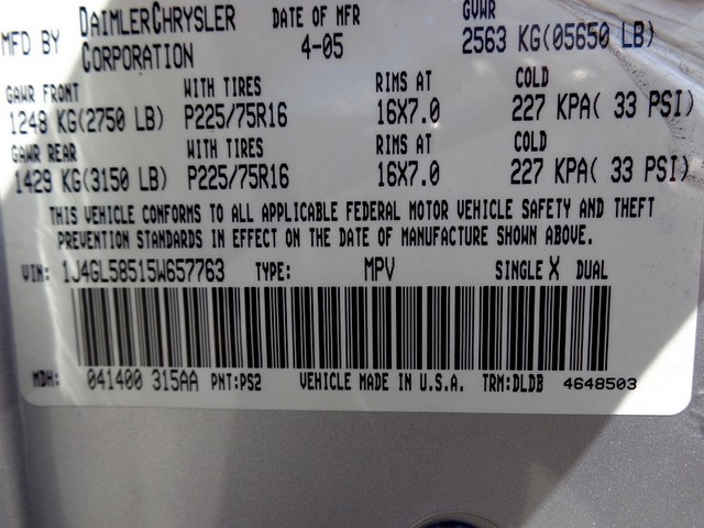 • VIN: 1J4GL58515W657763
