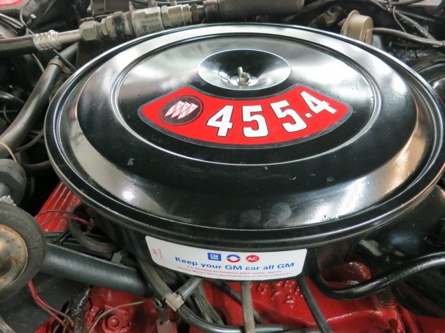 This beauty is quite the ride !! High gloss Red finish refinished a some time ago. Powered by the recently gone through, massive 455 C.I. V-8 w/ *370 H.P. this year !! Paired with the 3 spd. Turbo Hydra-Matic 400 Transmission.The Black interior is still beautiful as is the rest of original interior with minor wear on controls, etc....