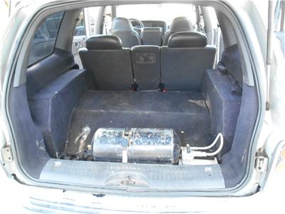 -  Front seat carpet is torn, Dome light is missing, 2 rear seat belts are missing.