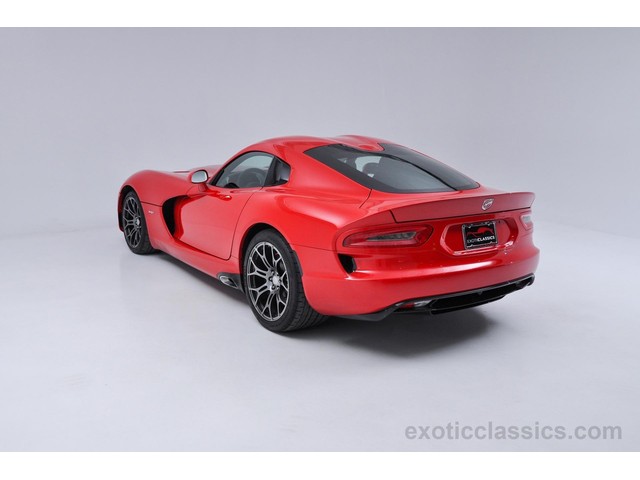 2013 SRT Viper Coupe Exotic Classics presents this beautiful 2013 Dodge SRT Viper Coupe. The car is finished in Adrenaline Red with a Black Interior. This very low mileage SRT Viper is in showroom new condition.For 2013, the SRT Viper has gone through a complete redesign. The fit and finish, technology, performance and comfort of the new Viper have improved by leaps and bounds over the previous generation Vipers. Although still powered by an 8.4 liter V-10 engine, it has many improvements such as a lighter valve-train, forged pistons, sodium filled exhaust valves and a stiffer block casting. Output is now 640 horsepower and 600 lb-ft of torque. The frame is lighter and 50% stiffer than the outgoing viper. The quality of the interior has improved with many more amenities available and is much more comfortable than previous Vipers. For the first time, the Viper now comes with stability control and launch-control. On the outside, the paint quality of the new Viper is amazing.This Viper is equipped with the Track Package, which includes anti-lock 4 wheel performance brakes with Stoptech 2 piece rotors and Sidewinder 2 Hyper Wheels. In addition it is equipped with SABELT leather bucket seats and red seat belts.This SRT Viper has been serviced regularly. The in service date was 4/29/2013 so it is still covered by the balance of its factory warranty. With only 1,251 miles, this SRT Viper is ready to roll.