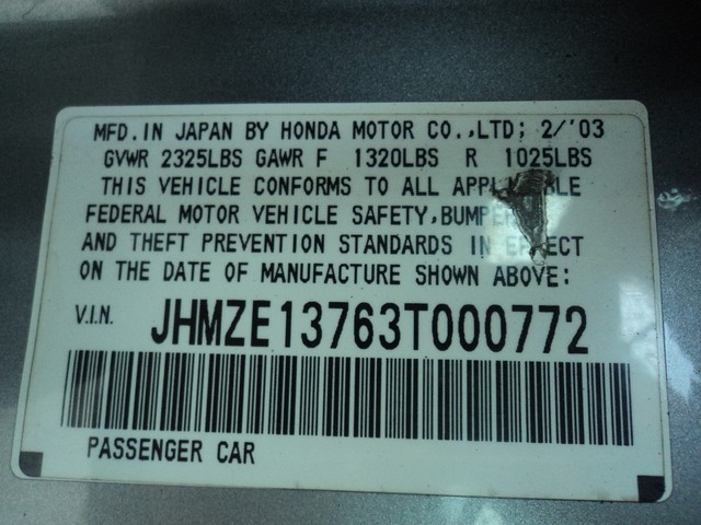 • VIN: JHMZE13763T000772