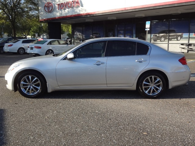 New arrival! Priced below market! This G35 sedan will sell fast! -Navigation system, Bluetooth, Heated fron t seats, Leather seats, And MP3 Cd Player- -Popular color combo -NHTSA Five star crast test rating!- This G35 Sedan looks great with a clean Black interior and Silver exterior! Please call to confirm that this G35 Sedan is still available! Call us today to schedule a hassle-free test drive! We are located at: 10564 Philips Highway, Jacksonville, FL, 32256. **Price excludes tax, tag, dealer installed options, $98 private tag agency fee and $699.00 pre-delivery service fee. The options and features include: Driver/Front Passenger Frontal/Side-Impact Airbags, HomeLink Universal Transceiver, Infiniti Vehicle Immobilizer System, Roof-Mounted Curtain Side-Impact Airbags, Vehicle Security System, 10-Speaker Audio System, 9.3GB Music Box Hard Drive w/Flash Slot, Bluetooth Hands-Free Phone Capability, Bose AM/FM Stereo w/6-Disc CD/MP3 Player, Driver Seat/Mirror/Steering Wheel Memory System, Dual-Zone Automatic Temperature Control, Infiniti Controller w/7-Inch Rearview Monitor, Infiniti Hard Drive Navigation System, Infiniti Voice Recognition System, Leather Upholstery, Power Adjustable Heated Front Seats, Power Door Locks, Power Tilt/Telescopic Steering Wheel, Power Windows w/Front One-Touch Up/Down, Rear Window Defroster w/Timer, Steering Wheel Audio Controls, Steering Wheel-Mounted Cruise Control, Integrated Front Fog Lights, Power Heated Exterior Mirrors, Power Sliding Tinted Glass Sunroof, Remote Keyless Entry System, Speed-Sensing Flat-Blade Windshield Wipers, Electronic Brake Force Distribution w/Brake Assist, Intelligent Key w/Push-Button Ignition, Power 4-Wheel Disc Anti-Lock Brakes, Tire Pressure Monitoring System, Vehicle Dynamic Control w/Traction Control