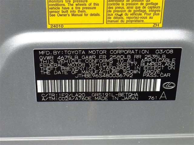 With impressive performance, drives have continually categorized this as the comfort-oriented Lexus. One might suggest such a kind remark is obvious! Beautiful and Loaded with features. One-owner and very well maintained with a clean CARFAX. Email me now for specials!! With only one previous owner, this automobile is ready for you.This is a smoke-free automobile.There is no damage evident on this vehicle.This is a garage kept vehicle.The engine on this vehicle is running properly.This vehicle has no known defects.The mileage represented on this vehicle is accurate.There are no signs of prior damage on this vehicle.There are no noticeable dings on the exterior of this vehicle.This vehicle has a smooth shifting transmission.All power equipment is functioning properly.The exterior of this vehicle is extra clean.Extra clean interior. Absolutely no rips, odors or abuse.The tires on this vehicle appear to have no wear at all.