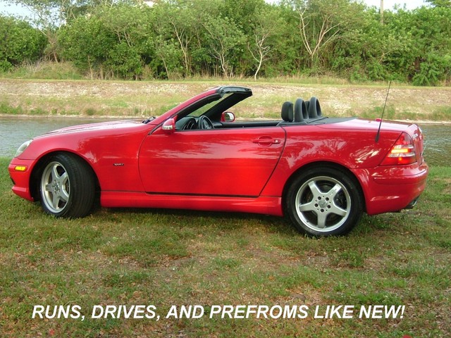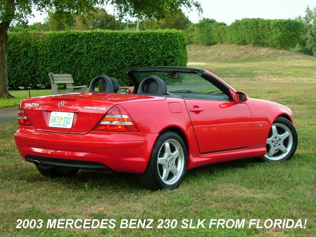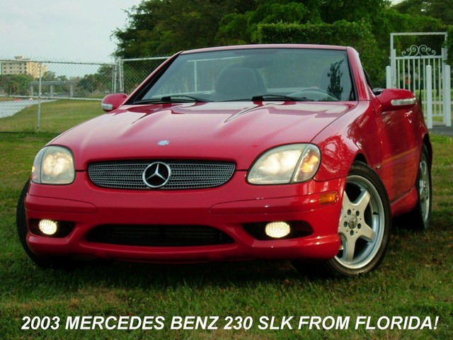 THIS 2003 MERCEDES BENZ 230 LK SPORT KOMPRESSOR CONVERTIBLE IS BRIGHT MERCEDES BENZ RED WITH A BLACK LEATHER INTERIOR! IT RUNS, DRIVES, AND PREFORMS LIKE NEW! THE BLACK LEATHER INTERIOR IS LIKE NEW. THE ORIGINAL FACTORY FINISH IS PERFECT WITH NO DENTS, DINGS, STONE CHIPS, OR SCRATCHES ANYWHERE! ALL THE OPTIONS AND ICE COLD CLIMATE CONTROL AIR! OPTIONAL AMG MERCEDES WHELLS. PROBABLY THE NICEST ONE AROUND AND IT ONLY HAS 75,000 ORIGINAL MILES! IT IS A TOTALY RUST FREE, GARAGE KEPT, FLORIDA MERCEDES! ANY QUESTIONS? CALL ME ANYTIME AT 954-695-1001. JAY