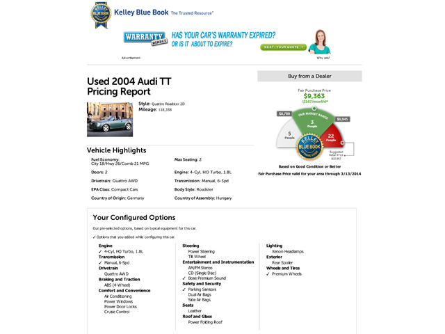 2004 Audi TT Quattro AWD Convertible 5V Turbo