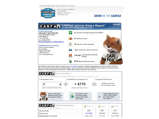 This Audi was recently traded at our Dealership, and Acton Toyota is pleased to offer it for sale on eBay! Prior to us making it available for sale, our master-certified Toyota technicians performed a multi-point inspection along with a used car safety check, at our award winning service department. This TT Quattro passed with ease. A copy of the multi-point inspection is listed with the photographs for your confidence in bidding.