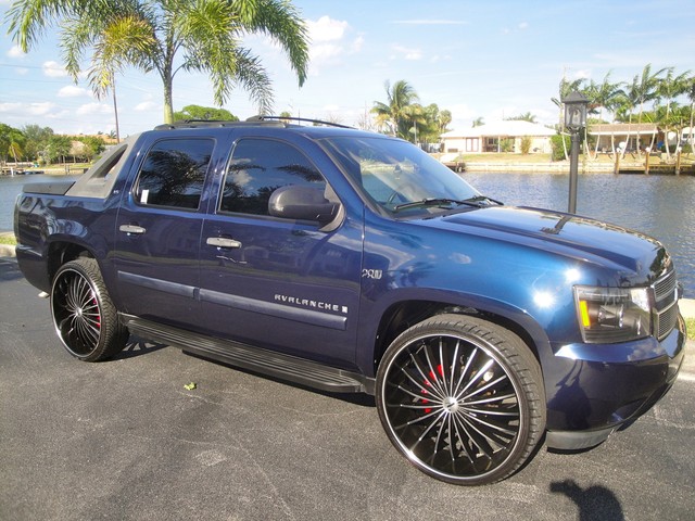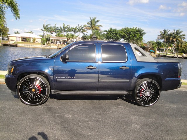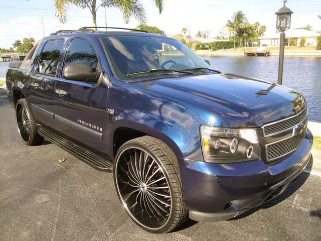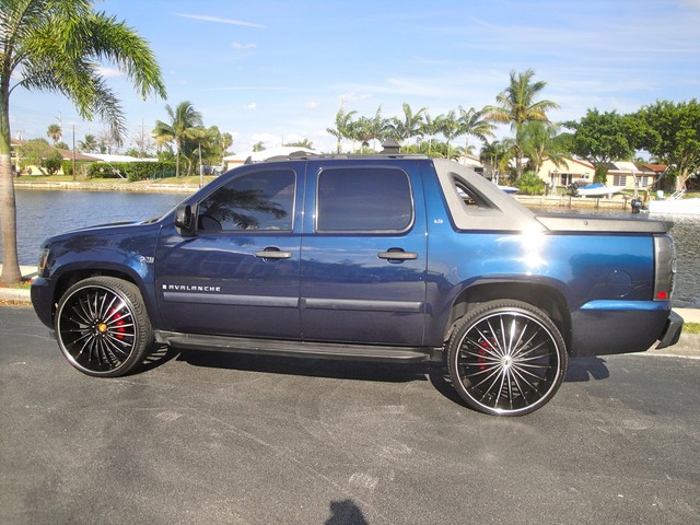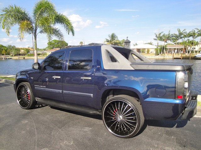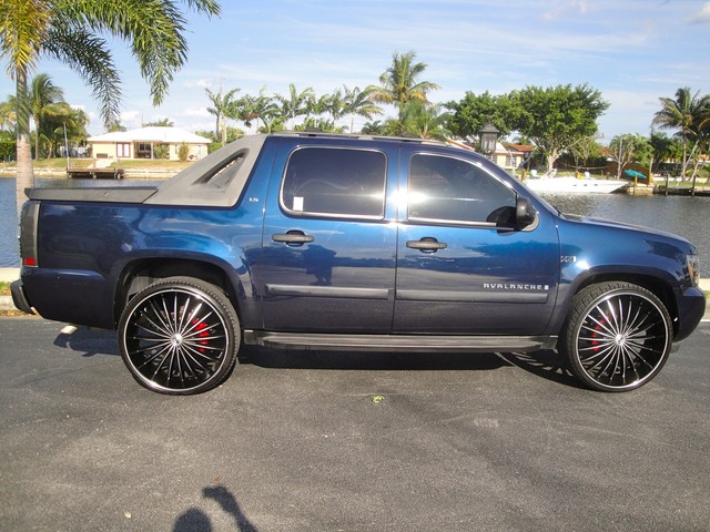 THIS IS A 2007 CHEVY AVALANCHE LS THAT IS A SIGHT TO BEHOLD. RARELY WILL YOU SEE A VEHICLE WITH 28" RIMS. THE TIRES LOOK EXCELLENT. IT RIDES SMOOTH AND STRAIGHT DOWN THE ROAD. THESE WHEELS WERE PUT ON PROFFESSIONALLY AND YOU CAN TELL. I HAVE NEVER DRIVEN A VEHICLE WITH THIS SIZE RIM THAT DROVE AS GOOD AS THIS ONE. THERE IS A FANCY STEREO SYSTEM WITH SUB WOOFER UNDER THE TONNEAU COVER. THERE ARE TV'S IN THE REAR HEAD RESTS. THE EXTERIOR LOOKS GREAT. REALLY SHARP WITH THE WHEELS. THERE ARE A COUPLE BLEMISHES BUT NOTHING CRAZY. A SMALL SCRAPE ON THE FRONT BUMPER CORNER. A SCRATCH ON ONE OF THE FRONT DOORS. BUT AGAIN OVERALL A VERY SHARP LOOK. THE INTERIOR LOOKS EXCELLENT. THE SEATS ARE IN GREAT SHAPE. THE MILES ARE LOW FOR THE YEAR AND ITS REALLY REPRESENTED IN THE CLEAN INTERIOR. IT RUNS GREAT. EVERYTHING WORKING AS IT SHOULD. YOU WILL SEE THE TIRE PRESSURE LIGHT ON. THIS LIGHT WILL BE ON BECAUSE OF THE AFTER MARKET WHEELS. EVERYTHING WORKS AS IT SHOULD. THE SWITCH THAT IS STICKING OUT UNDER THE RADIO IS THE ON/OFF FOR THE SYSTEM. YOU CAN SEE UNDER THE HOOD ALL OF THE EXTRAS INCLUDING THE EXTRA BATTERY AND PROFFESSIONALLY DONE WIRING.