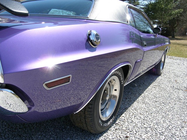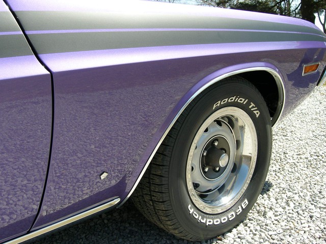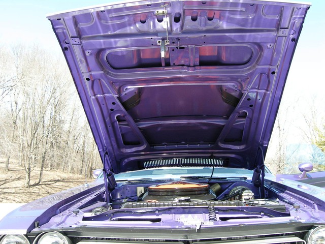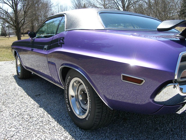 Super solid body with no rust and very nice panel fit, super straight car. Trunk pan was replaced during the restoration. Factory Plum Crazy Purple car, very straight body and excellent paint. All new interior minus dash pad, console and Rally dash.